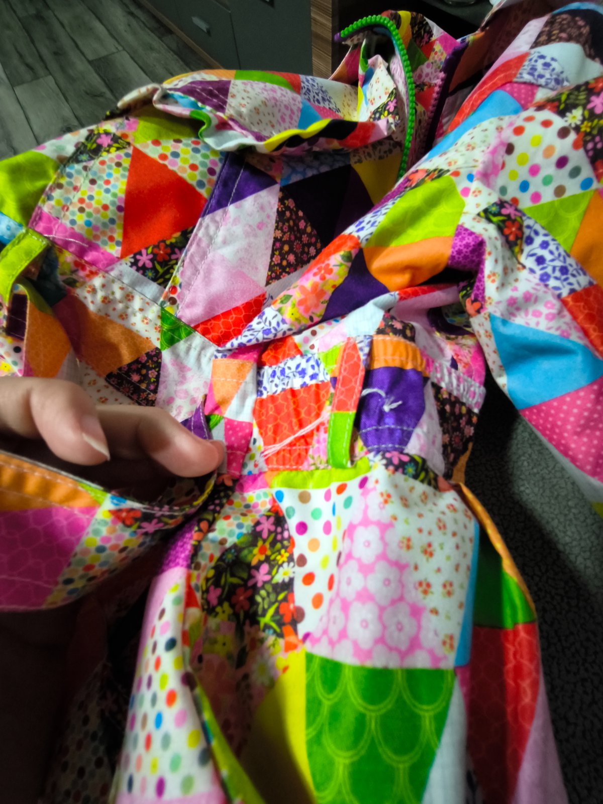 Čo sa týka trenčkotu jediná chybička je odpadnuty gombik z opasku ale mam ho takže stačí ho len prišiť je to odfotené...bohužiaľ niesom zdatná v týchto veciach tak to som nechala tak ...inak tento komplet odporúčam všetkými desiatimi..nam bol veľmi dlho dobrý ....bol to dcerin obľúbený komplet veľmi pekne ukáže so sukňami tým že ten trenčkot je taký rozšírený