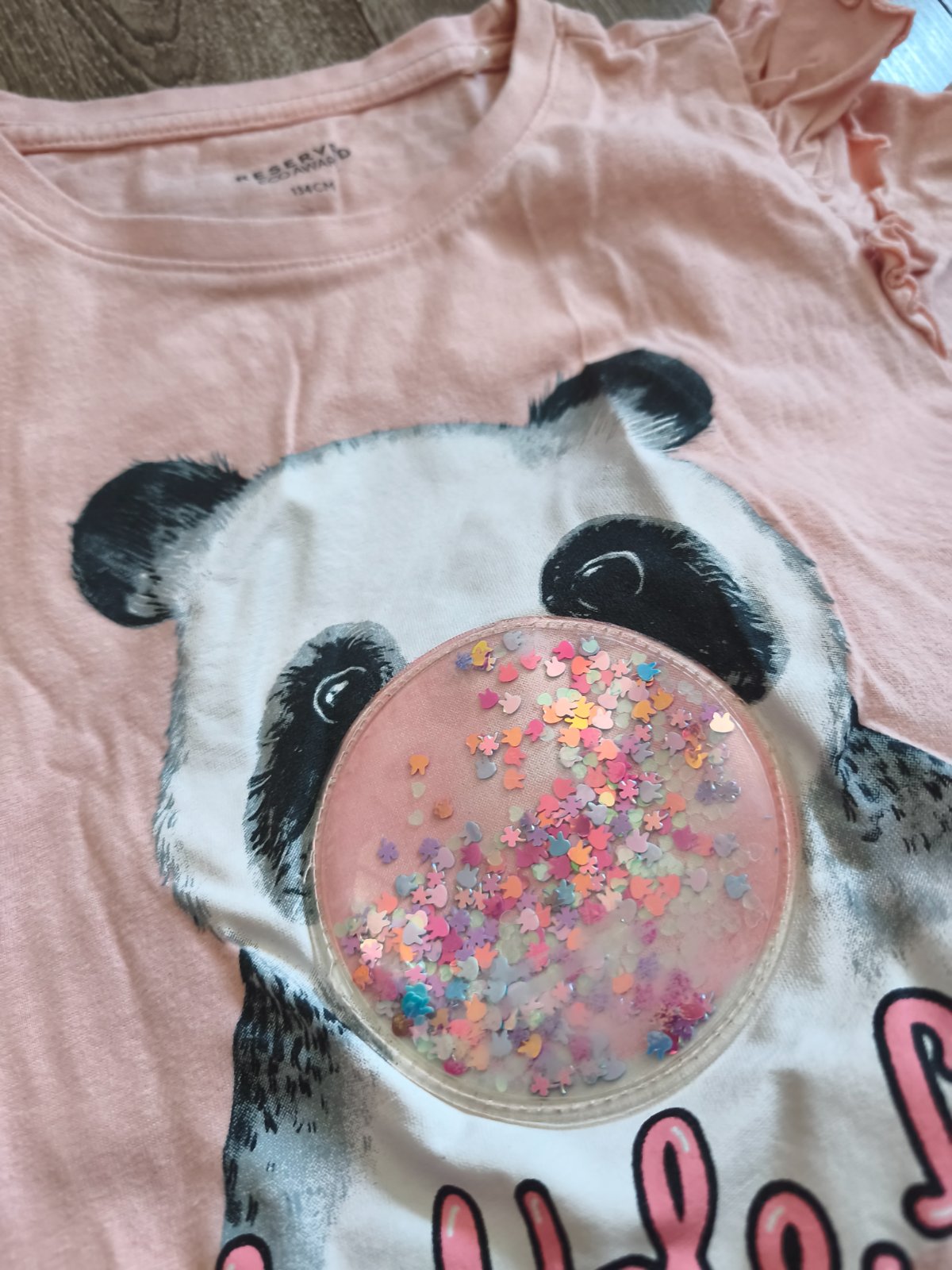 Tričko bavlna, našitý plastový krúžok a v ňom sú trblietky