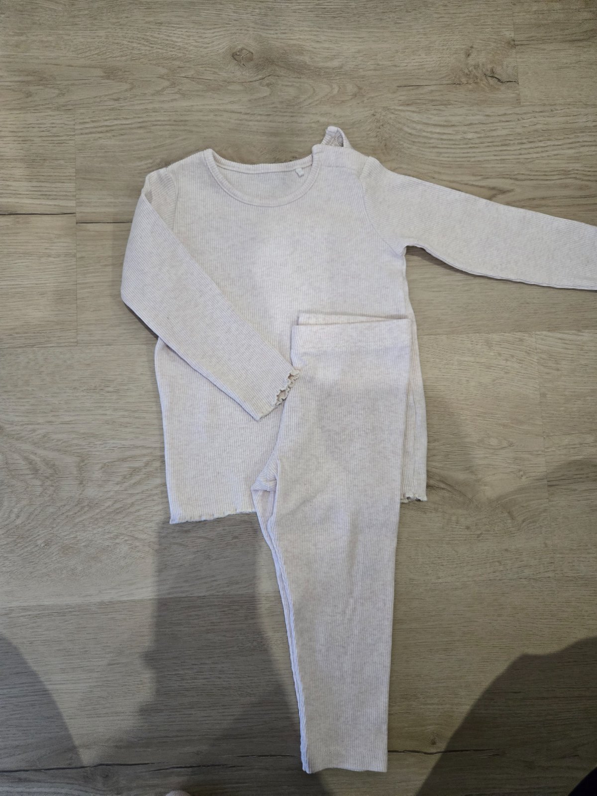 Nosené súpravy, majú žmolky (je to taký materiál, čo sa rýchlo žmolkuje 😊). Nosené spolu ako set, aj keď veľkosť svetrika je 6-9mes a leginiek 9-12 mes. Cena za set 🌸
