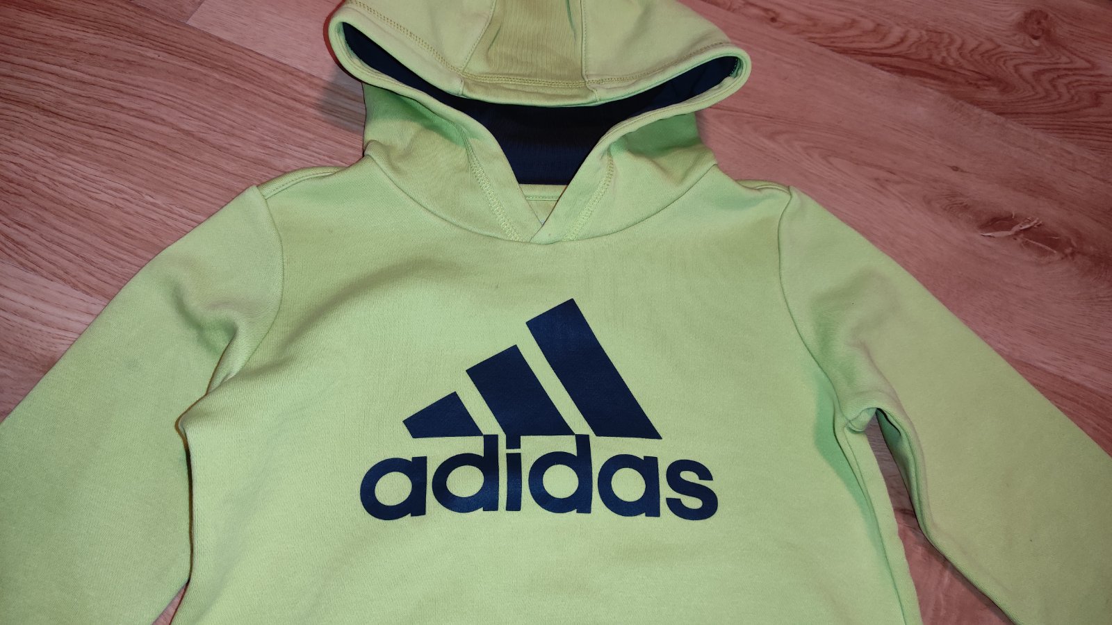 Ponúkam na predaj krásnu bavlnenú tepláková súpravu. Nosena do školy vo výbornom stave, mikina ako nová, tepláky nosené pri pásiky na boku nohy mini zatrhnutie, nevidno nejak pri nosení, inak v peknom stave, kolená neosuchane. Kombinácia sivej a zelenozltej. Na foto osvetlená bleskom a akoby mala fľaky, ale nie je flakata, nevyblednuta, bez zmolkov. Veľkosť 128 aj sedi. Cena 18 eur.