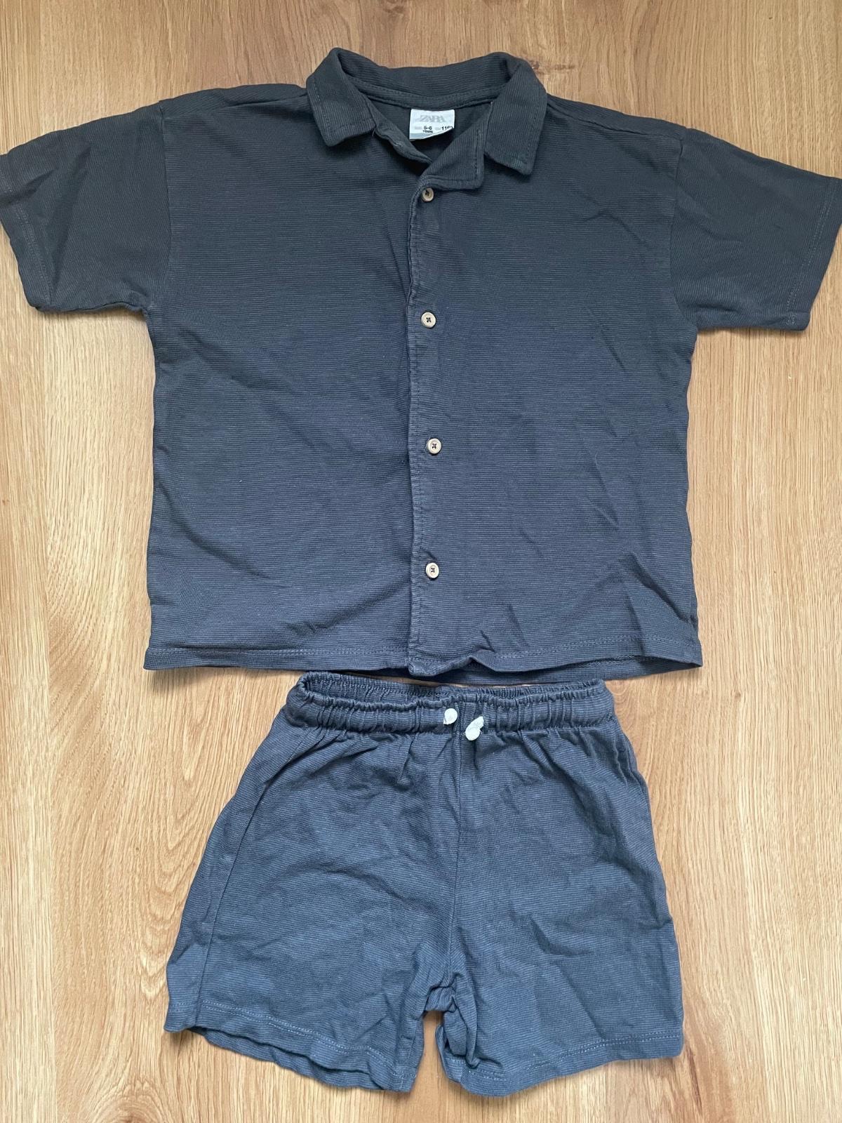 Letná súprava: košeľové tričko a šortky, veľkosť 116 (5-6 rokov), asi 2x oblečená, bez poškodenia.