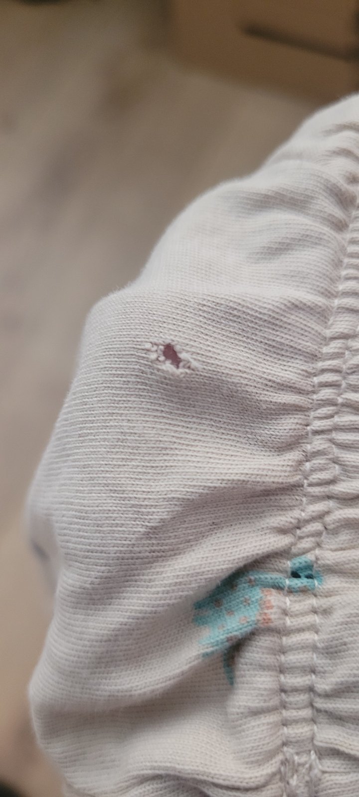 Na nohaviciach v zadnej časti je malá dierka, viď. foto.