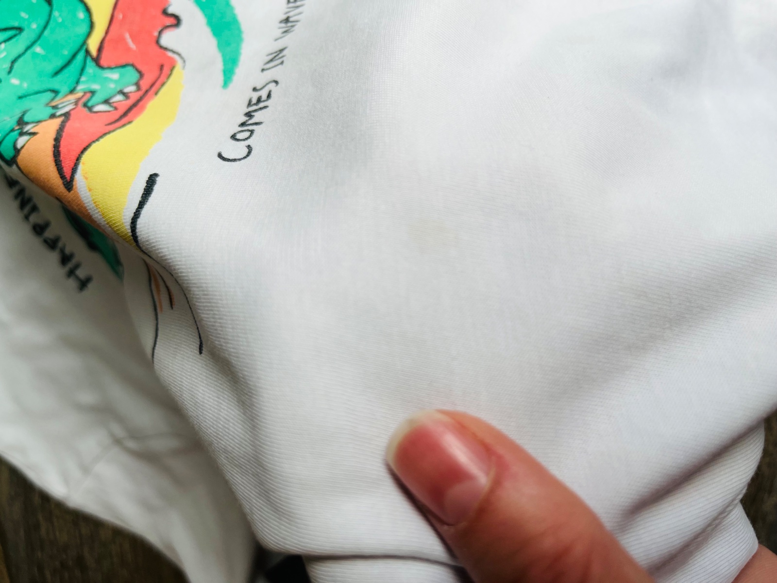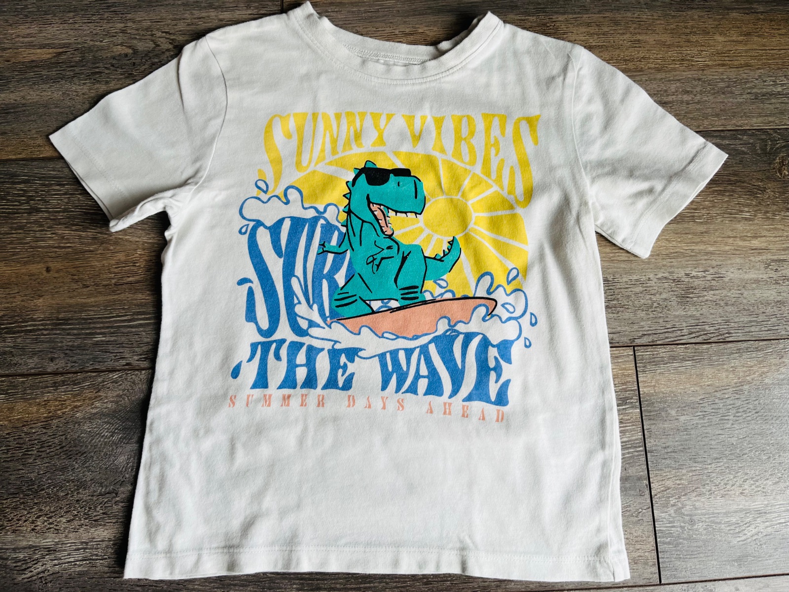 Ponukam na predaj Dino kratasky a 2tricka zn.HM. Kupované nove a nosene mojim synom. Pri fotení som si všimla na jednom tričku malý malo viditeľný fliacik-je na fotke. Možno pojde vyprať ja som to neskúšala.inak nemaju žiadne poškodenia.