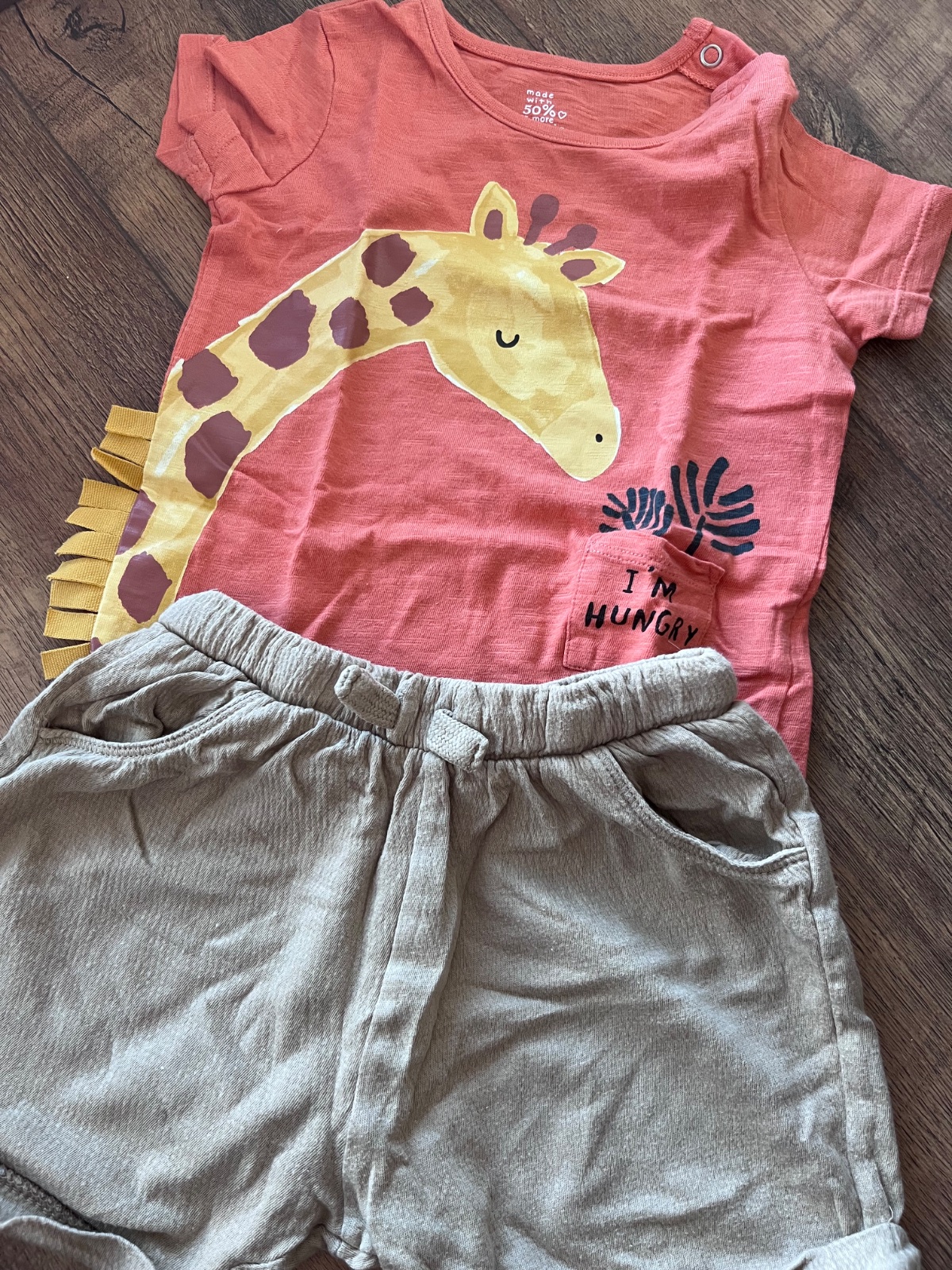 Predám krásny komplet veľ. 9-12m.bez poškodení, oblečený párkrát. Tenké nohavice a tričko s cvokmi na pleci pre ľahšie obliekanie