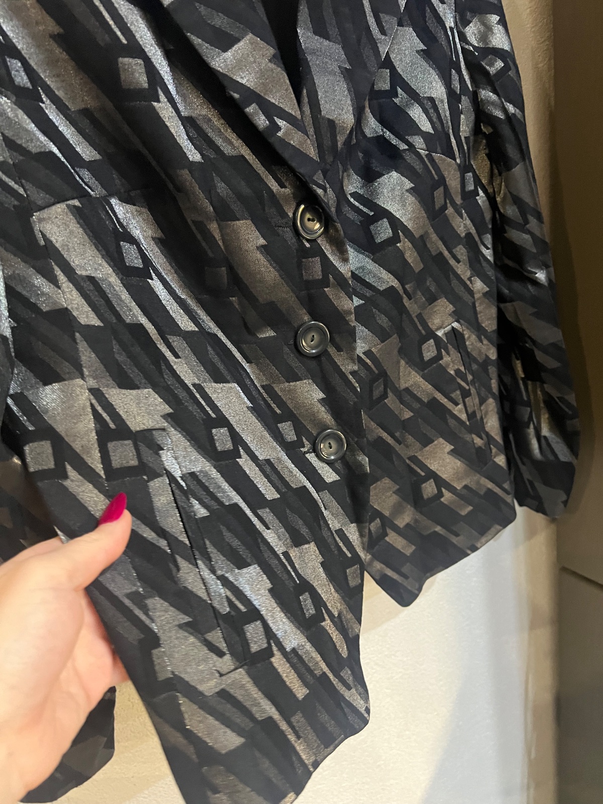 Predam tento kostym velkost 44, mne je velky preto predavam, fotila som na sebe, takze vidno ze visi na mne nosim 40 tku. Na poziadanie premeriam. Velmi kvalitny a prijemny material. Celkova dlzka ...