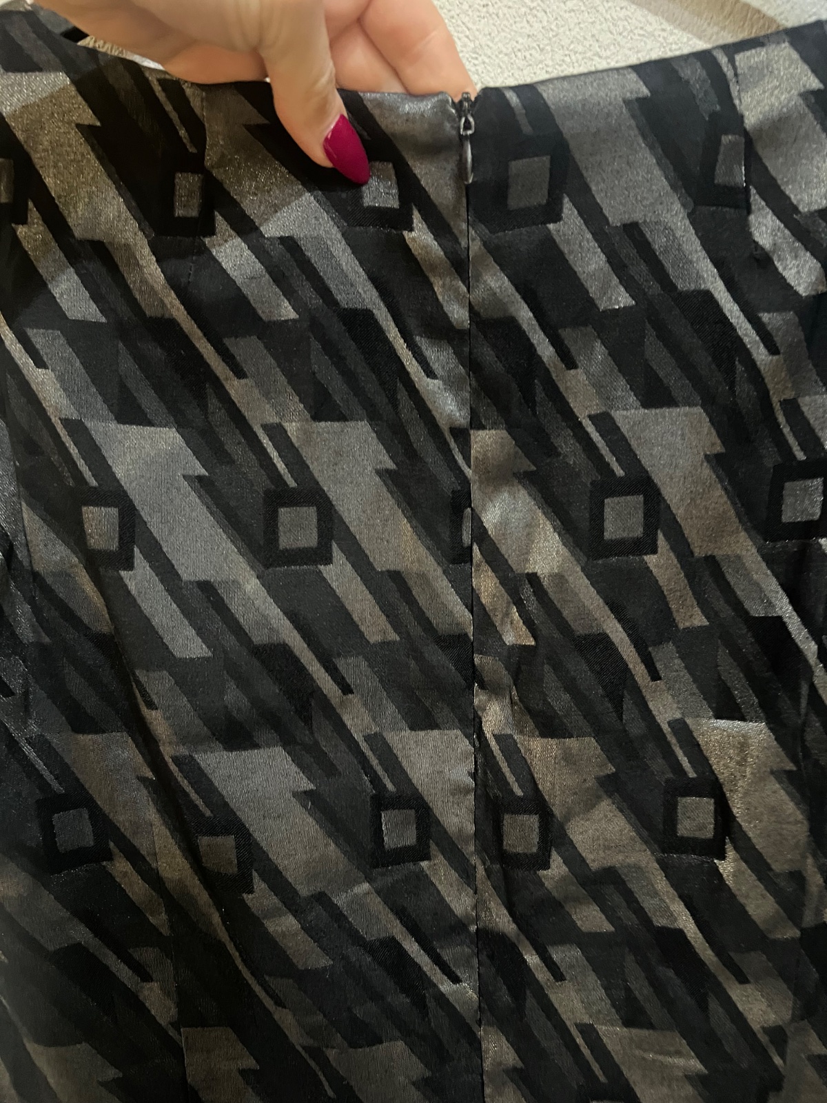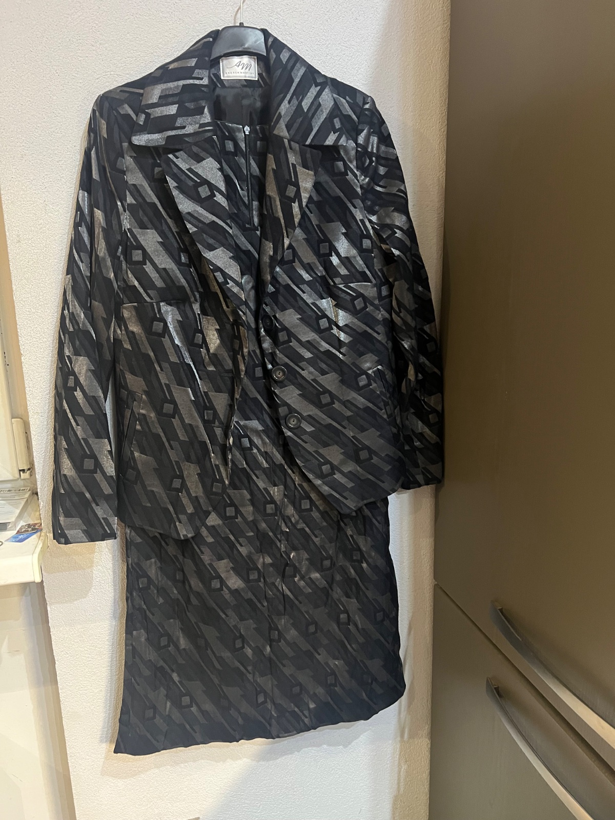 Krásny 2x oblečený suknovy kostým, sako na previazanie , 3/4 rukáv ,skladana sukňa so spodnickou . Mierne priesvitná. Top na zips,ľahučký . Sako má lesklé vzory