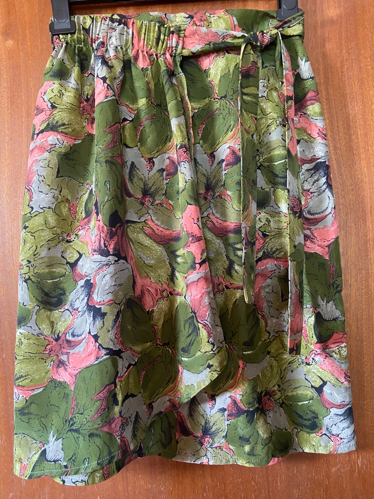 Sukňa polyester, original ateliérový kus - navyše ešte jeden diel na zavinutie s úväzom na stuhu. Inak klasický rovný strih vzadu na zips. Top je bavlnený rebrovaný úplet.