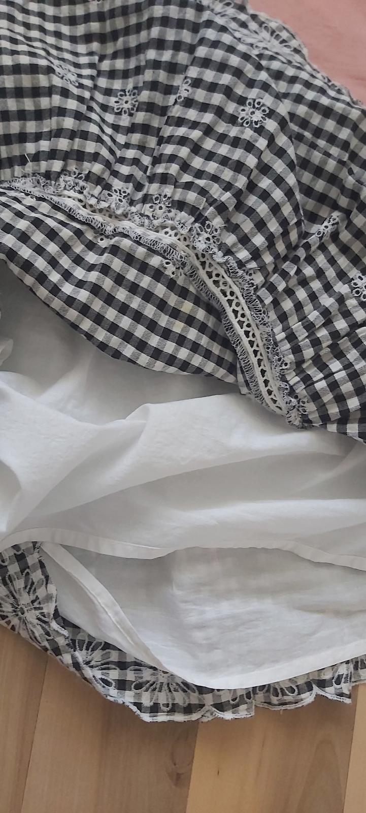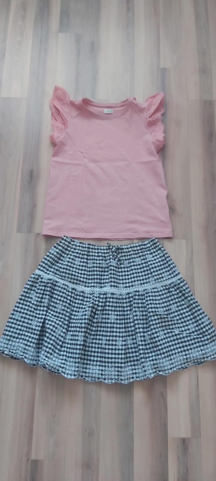 velkosť je 152 (na 11/12rokov) vzor madeira oba diely.Suknička má podšivku aby nebolo nič vidieť.Komplet je bez poškodenia oblečený 1-krát na školske fotenie.Stál cez 20e posúvame nech urobí radosť a parádu slečne čo rada nosí sukničky.