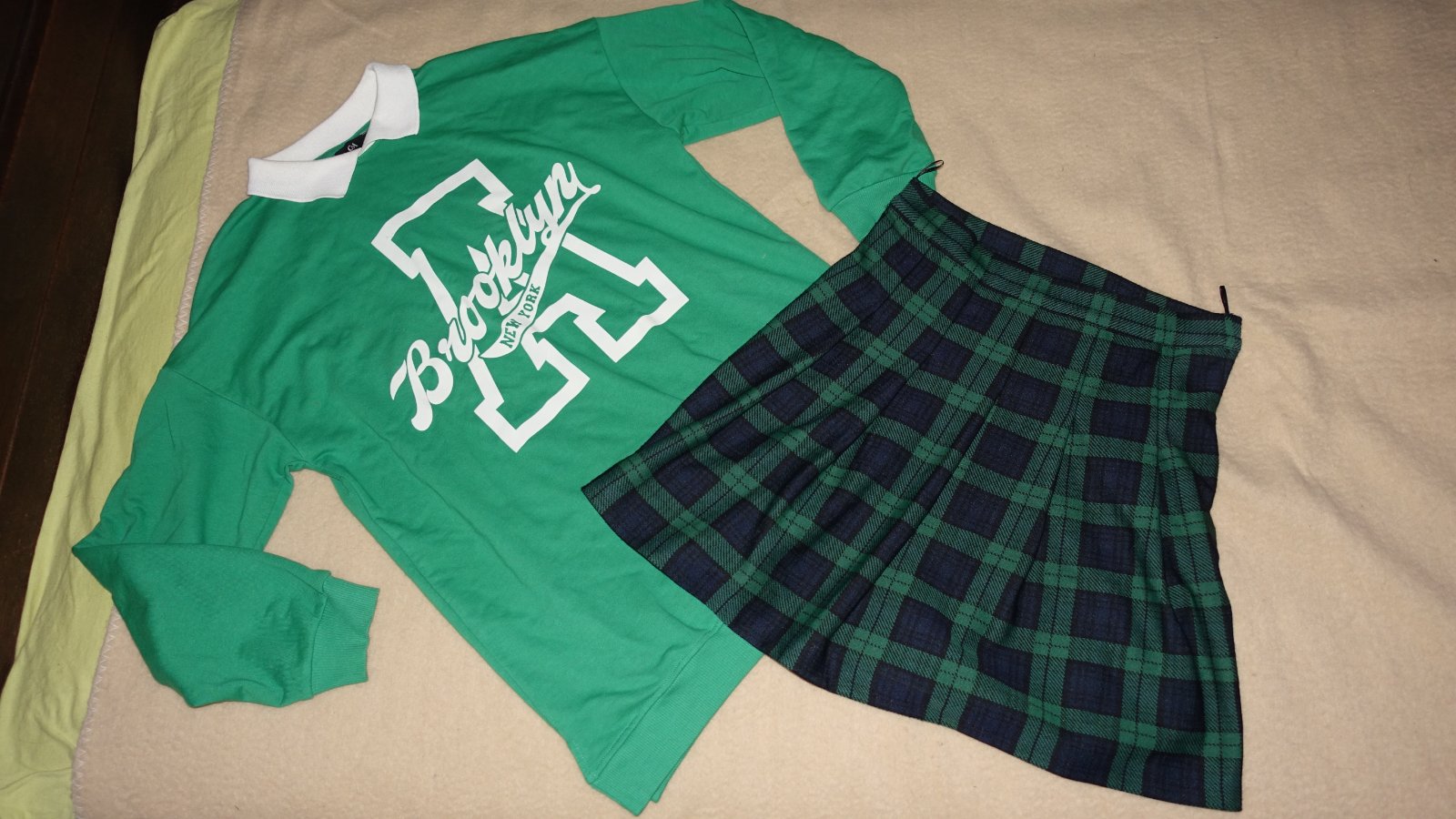 Krasny kompletik dlhsej mikiny a skladanej sukne vo vybornom stave- len raz obleceny.