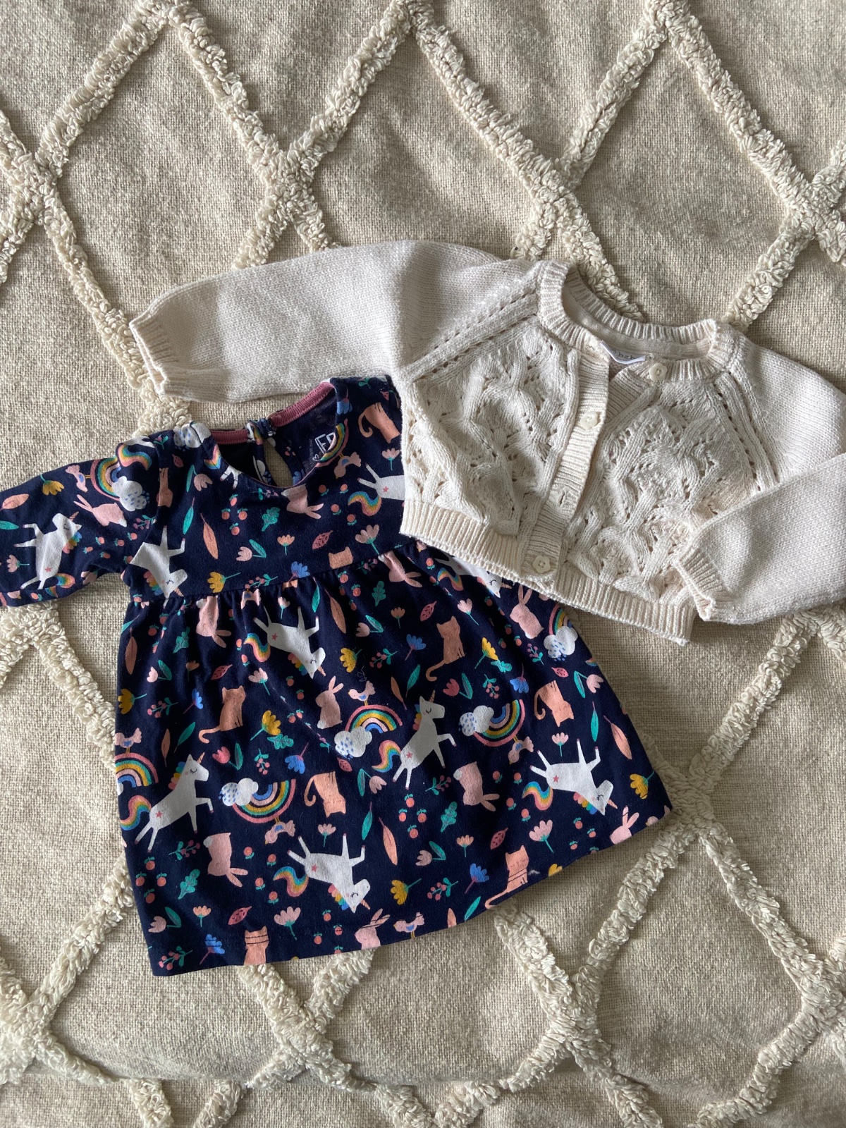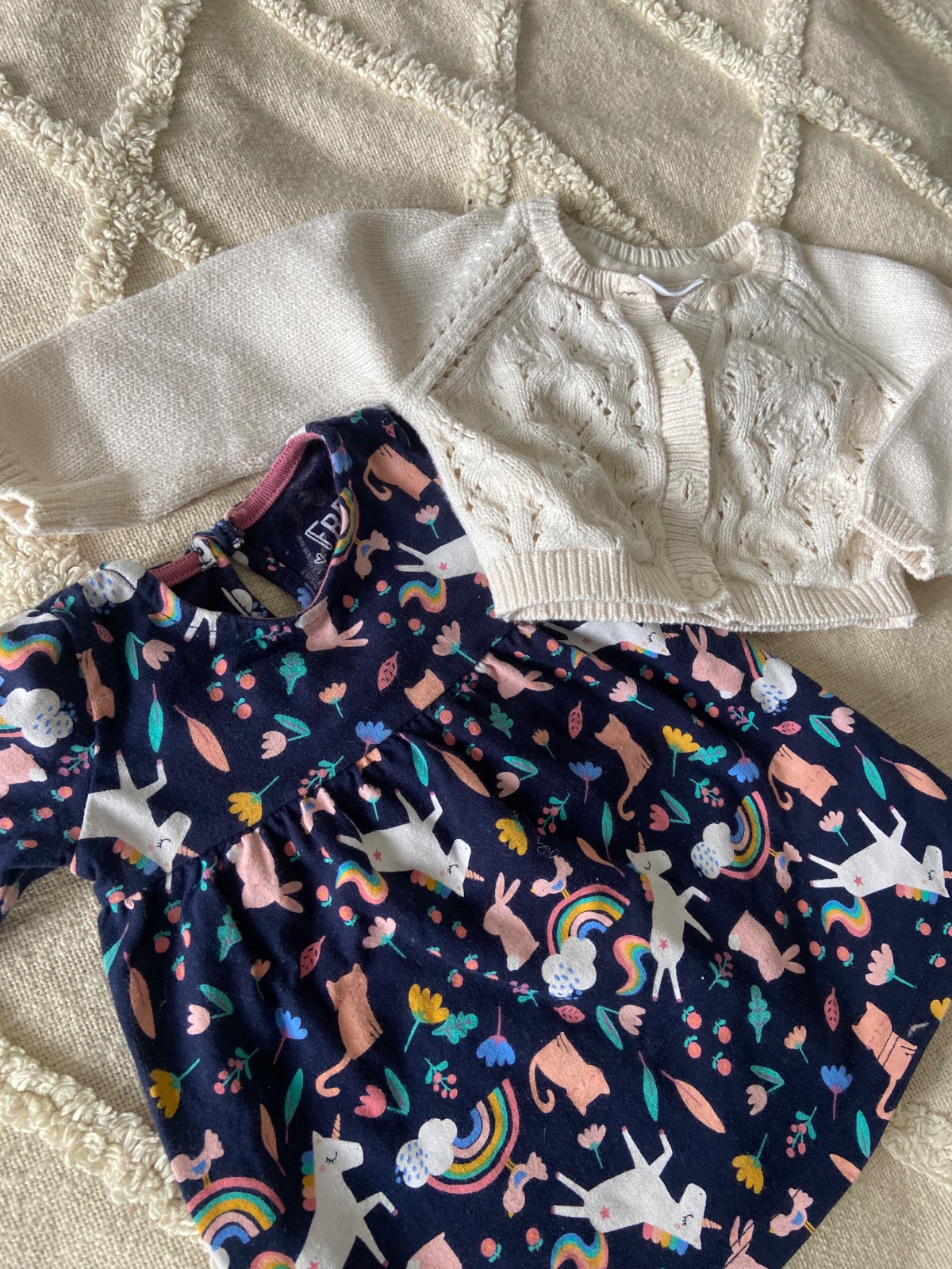 Krásne rifľové šatičky s výšivkou a k tomu ružové legíny. Súprava spolu vyzerá veľmi pekne, dcérka bola rozkošná, naša obľúbená súprava. Šatičky/ tunika sú z príjemného materiálu, mäkké. Veľmi dobr...