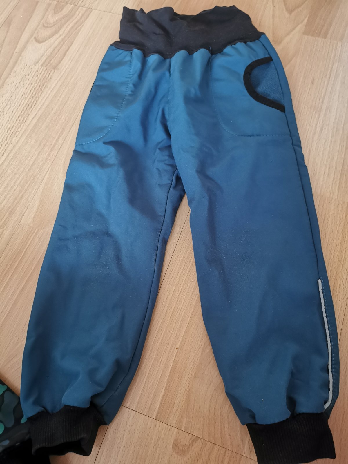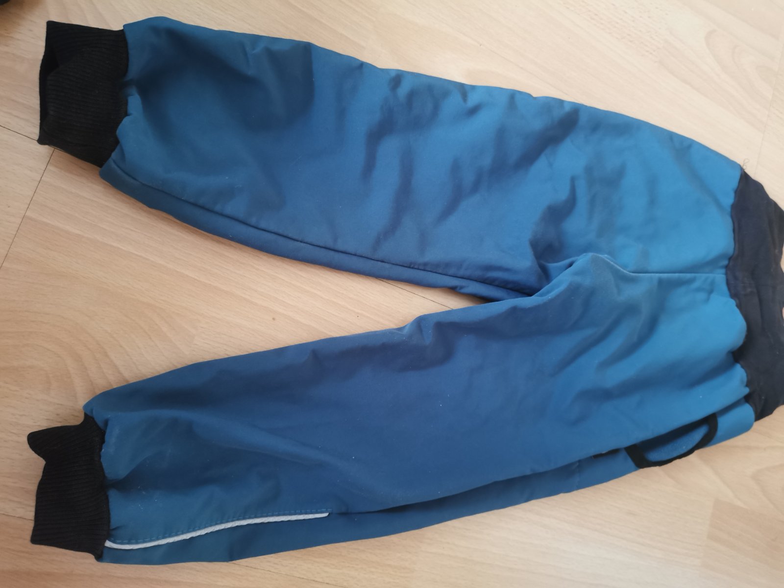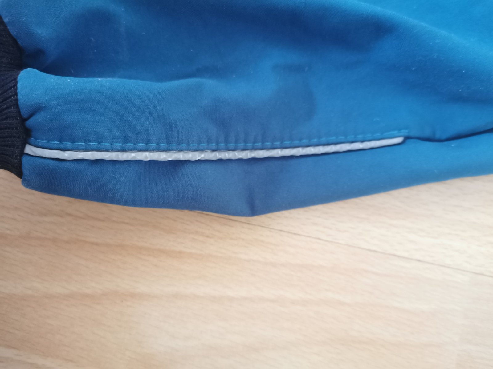 Na jednom mieste zatiahnuta nítka, vid foto. ináč plní svoj účel. Nohavice veľkosť 104, vetrovka veľkosť 110.