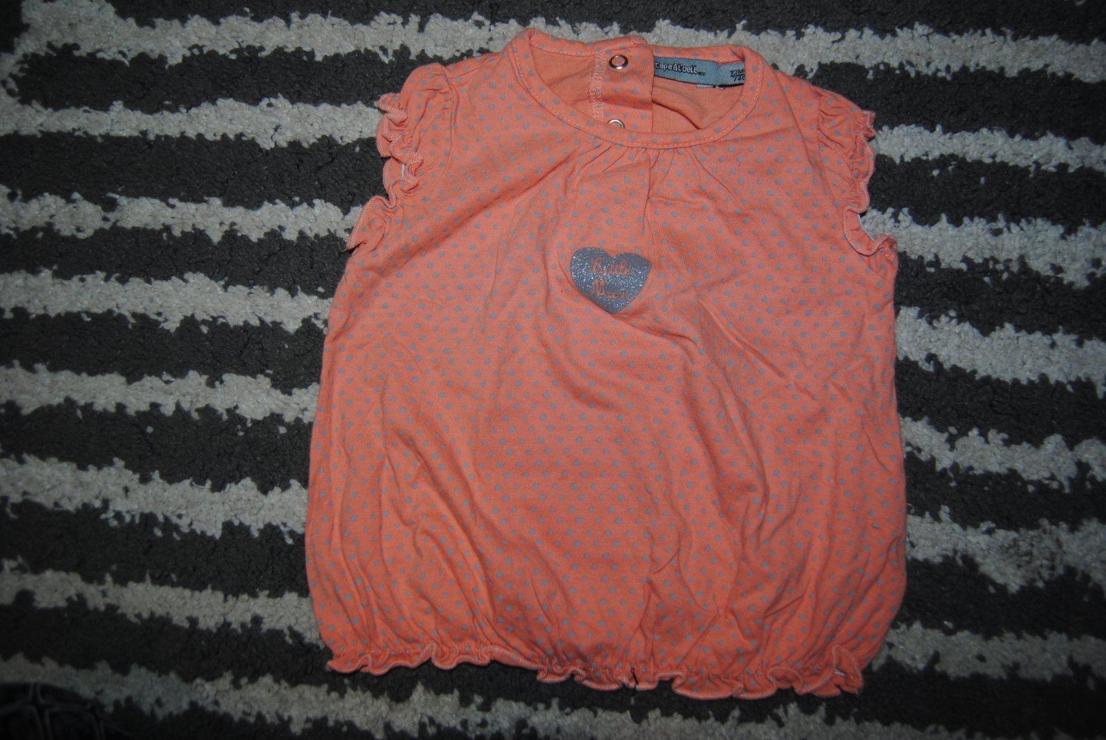 tielko-velmi dobry stav, bez poskodeni, syta farba, nazberkane konce, lahke, drzi tvar, malicko nosene, dlzka 30cm, šírka pod pazuchami 25cm, velkost uvedena 12M