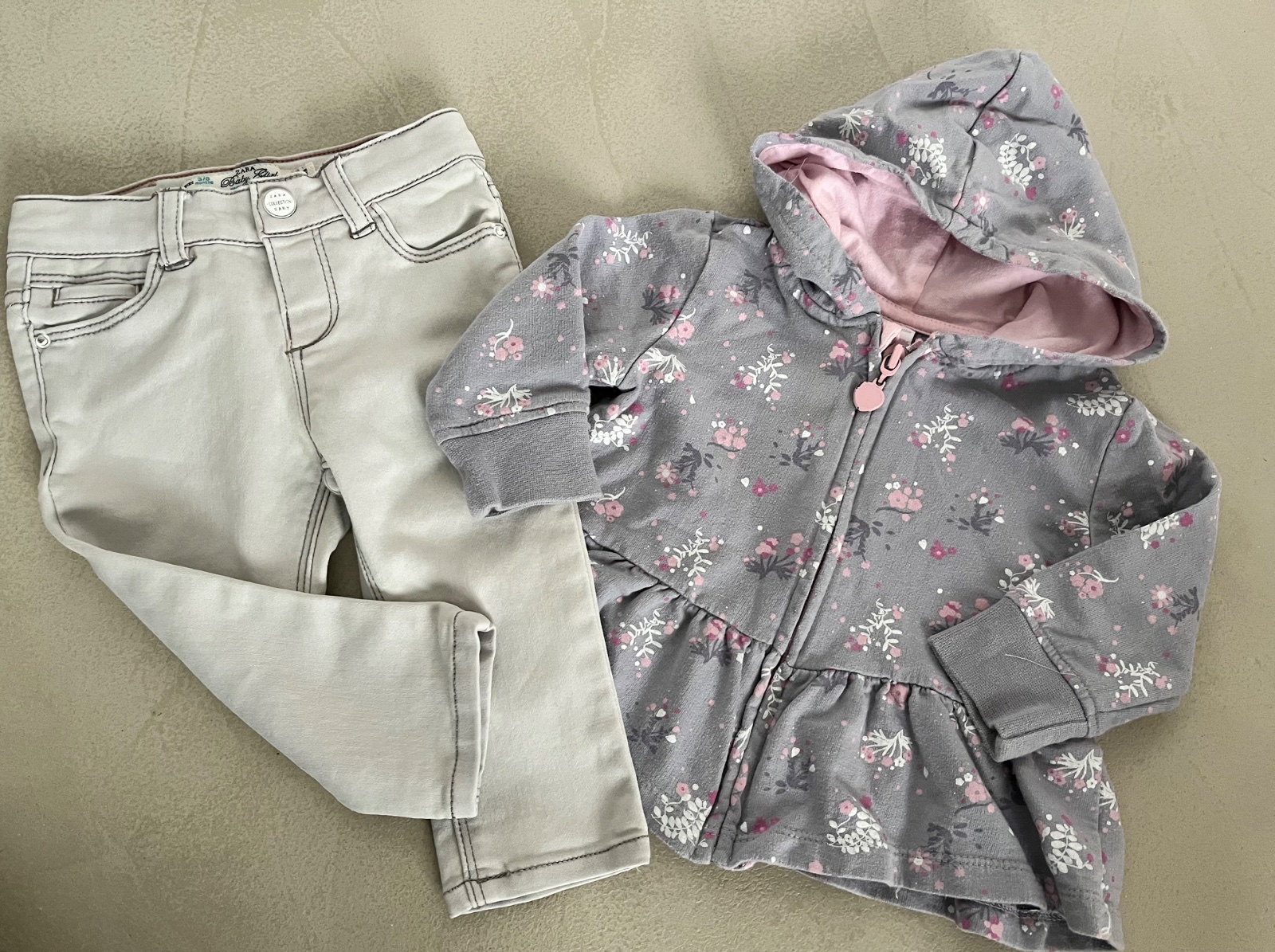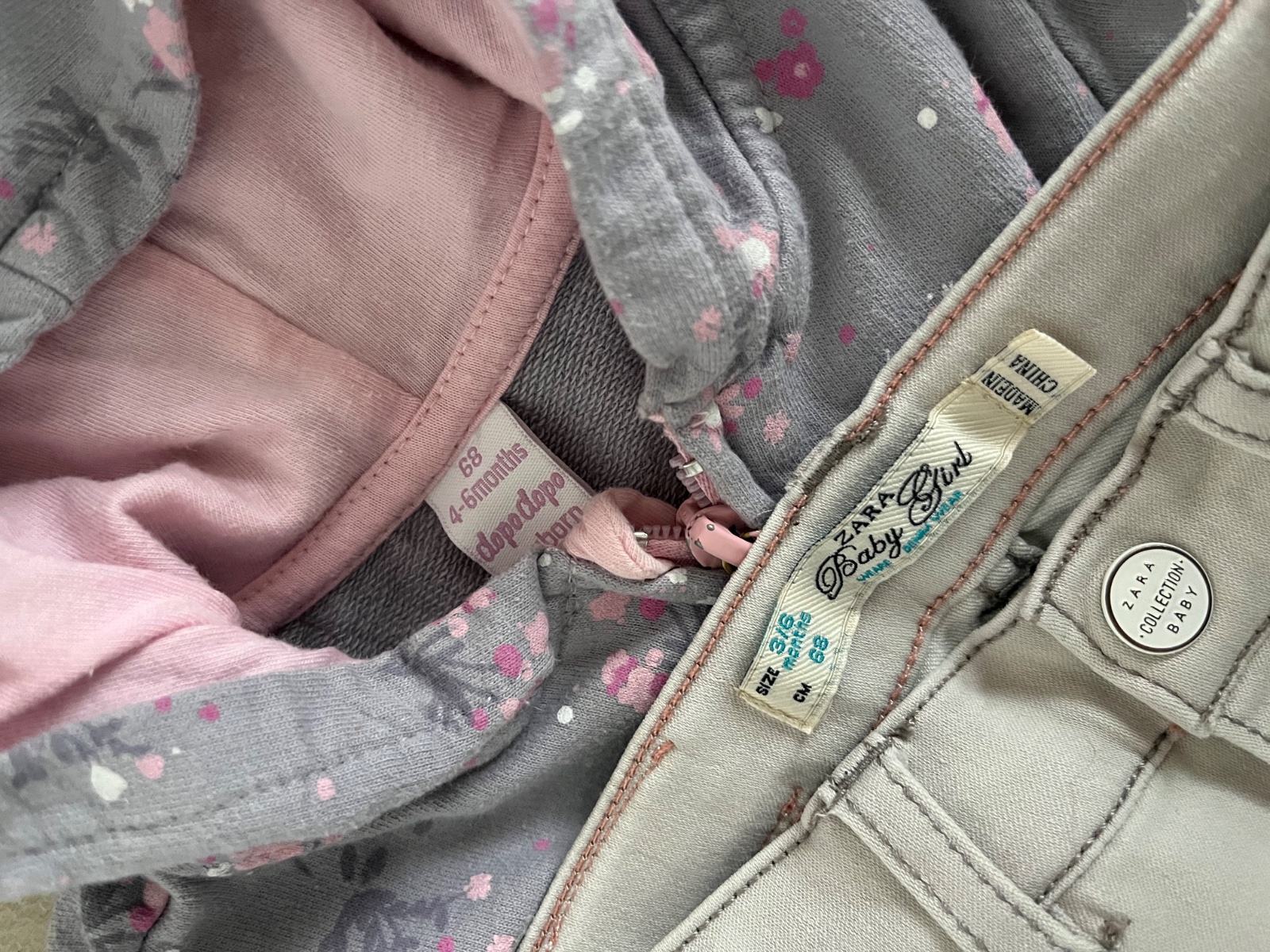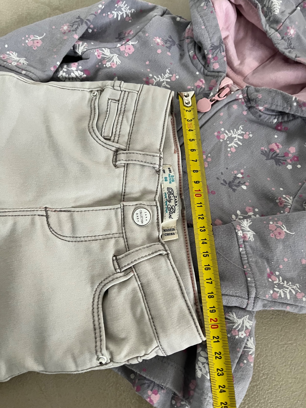Svetle dzinsy Zara a mikina s volanikom vel. 68