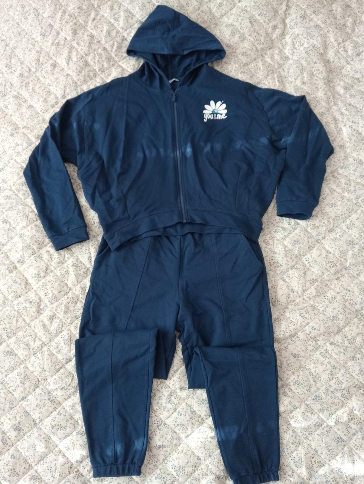 Predám krásnu tenkú teplákovú súpravu Zn. Mayoral. Výborný stav bez poškodení. Vrch v štýle voľný crop top. Dĺžka vpredu 44 CM, vzadu 48 CM. Nohavice v páse guma, šírka v kľude 31 CM, dĺžka 87 CM, vnútorná 62 CM. Je to Mayoral veľkosť 162 CM.