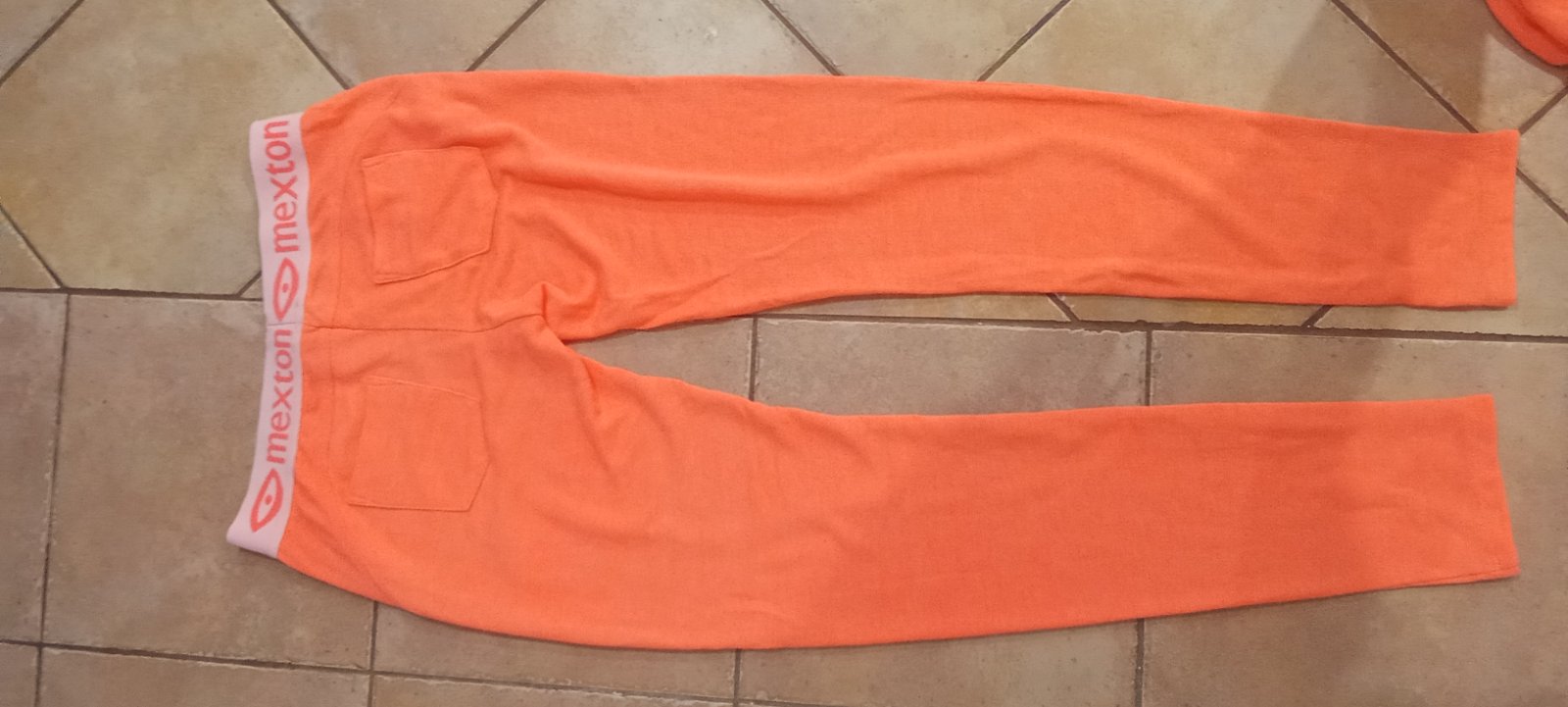 úpletový oranžový kostím bez podšívky, pás: 63cm, dížka:85cm