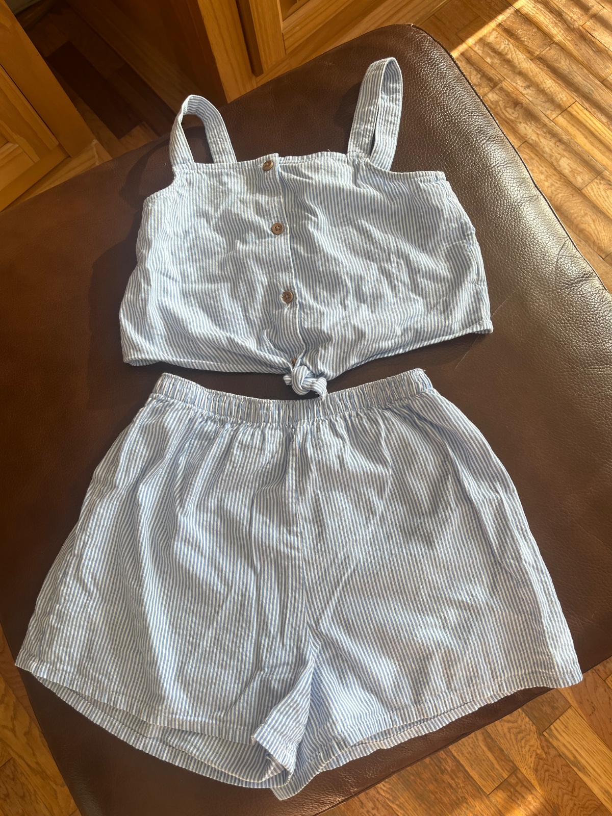 Predám chutný setík na leto, ľahučký, prírodný materiál, dcérkou obľúbený, pretože ho ani necítila na sebe, kraťasky na gumu.Mimoriadne pohodlný a vydarený kúsok známej značky. Vo vÿbornom stave, bez poškodení. V prípade záujmu o viaceré sety v mojej ponuke, viem sa dohodnúť na výraznej zľave.
