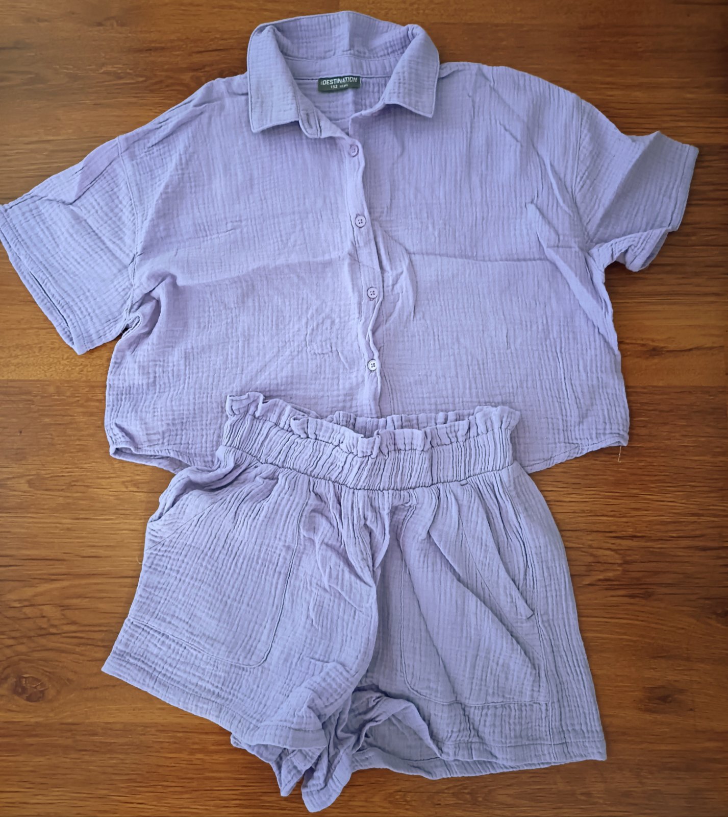 Krásna letná súprava v jemných pastelových tónoch, veľmi trendy. Tričko o čosi viac nosené, ale všetko je bez poškodení.