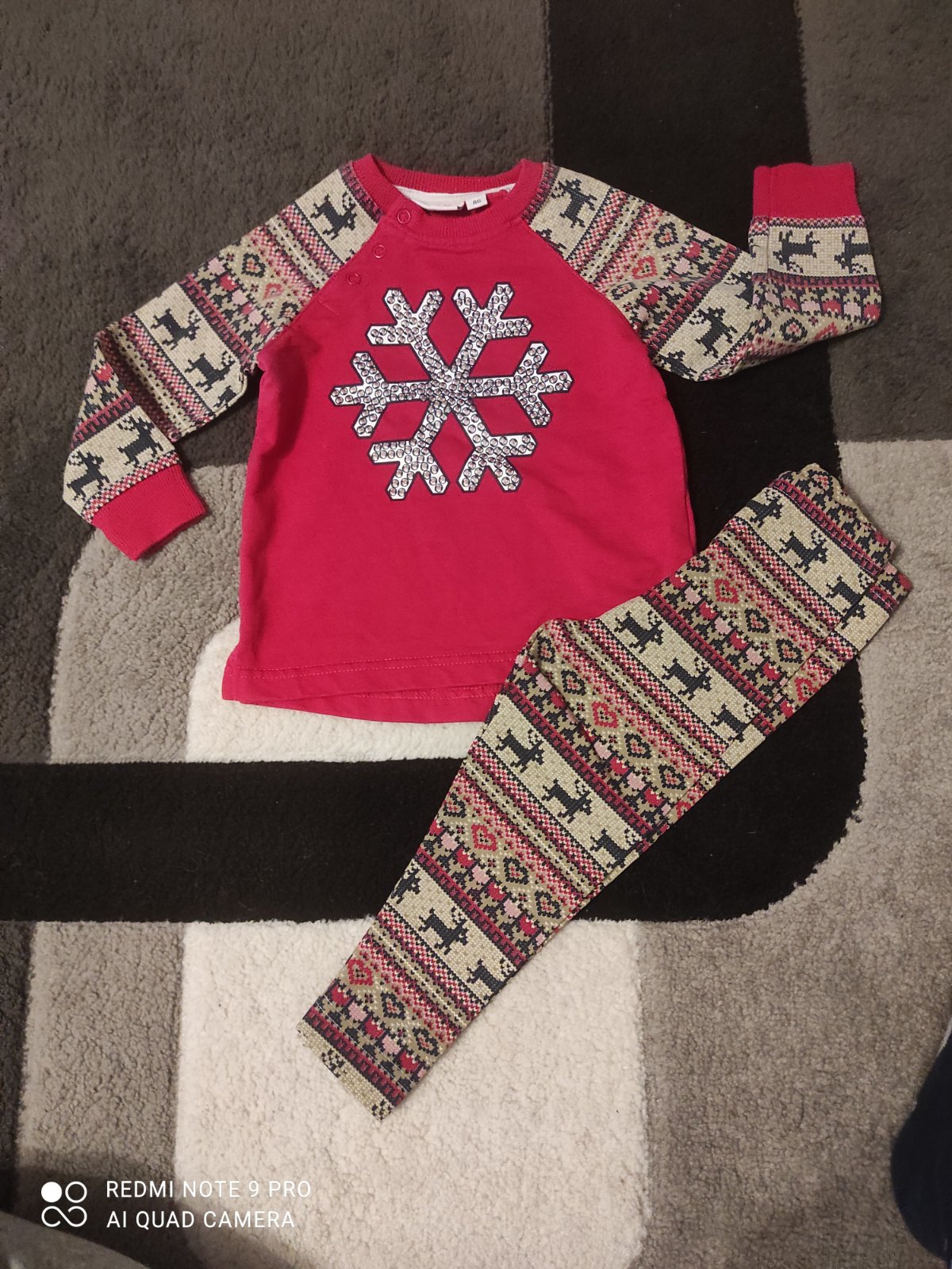 Tepláková súprava nosená jedným dieťaťom vo veľkosti 80. Nájdu sa minižmolky, možno nejaký malý fliačik (Ja som si nevšimla). Na mikinke, na pleci gombíky pre ľahšie obliekanie. Do škôlky alebo na ...