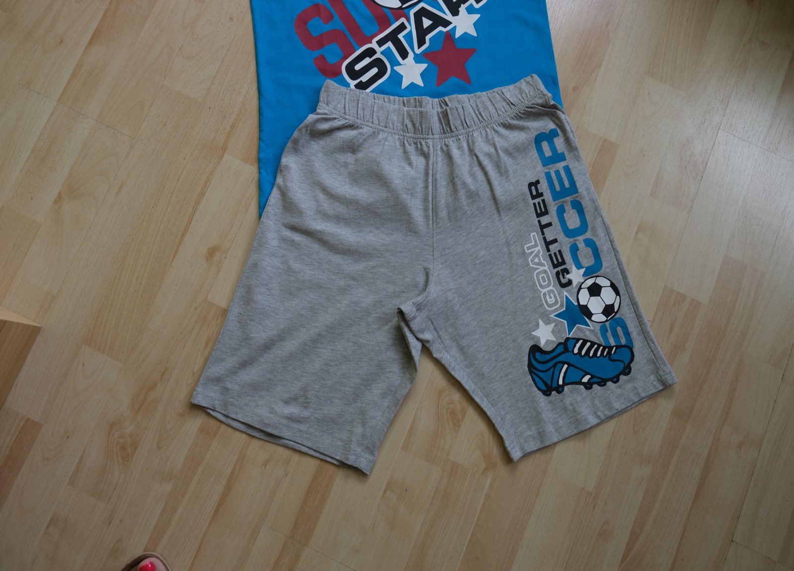 Šortky: b. dĺžka 45 cm, v. dĺžka 22 cm, pás 2 x 32 cm guma, boky 2 x 52 cm, p. sed 27 cm, z. sed 35 cm, šírka nohavice 25 cm,