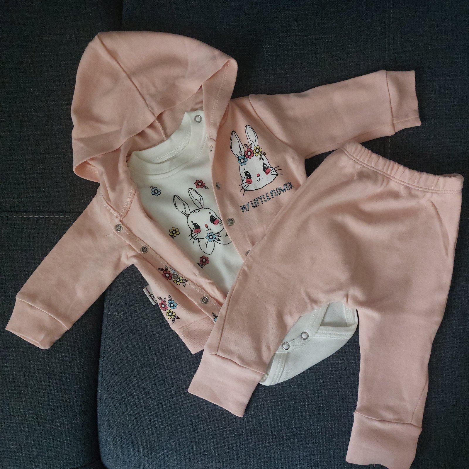 Predám túto krásnu a veľmi pohodlnú súpravičky pre bábätko. Súpravička má manžety, takže sa dá ešte aj podohnúť, veľmi príjemná na telo. Je v 100% stave bez poškodení, oblečená len párkrát. Farba je skôr marhuľková. Cena+poštovné
