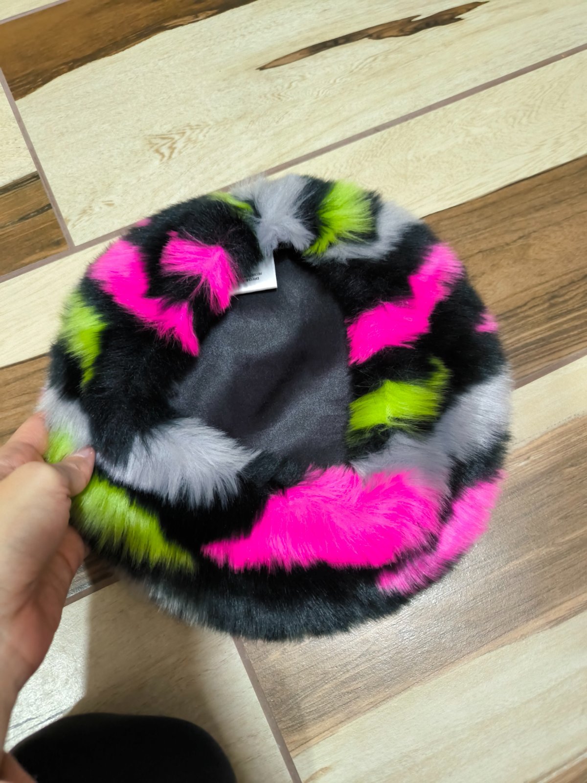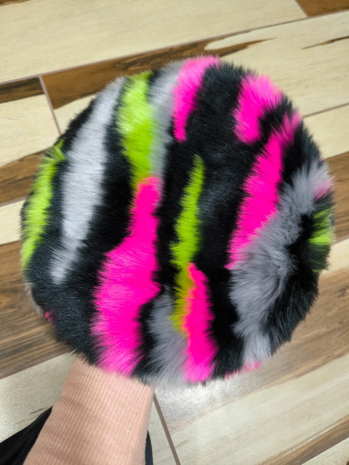 Chlpatý komplet - mikina, sukňa, baretka a kožuch