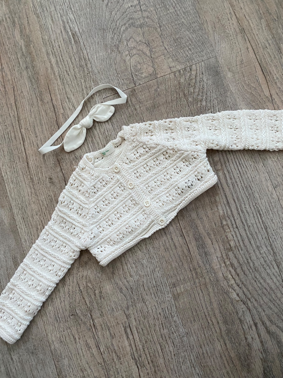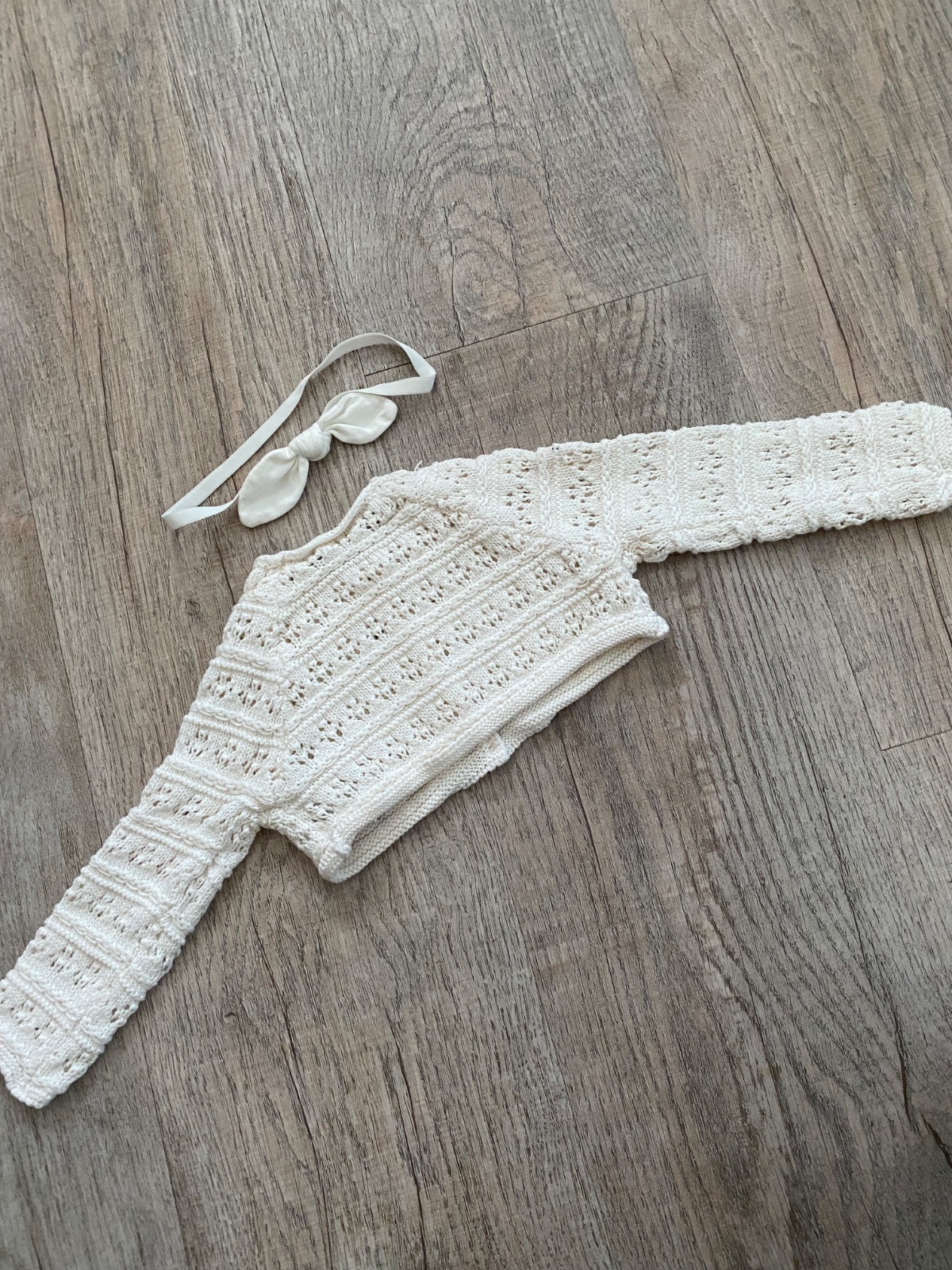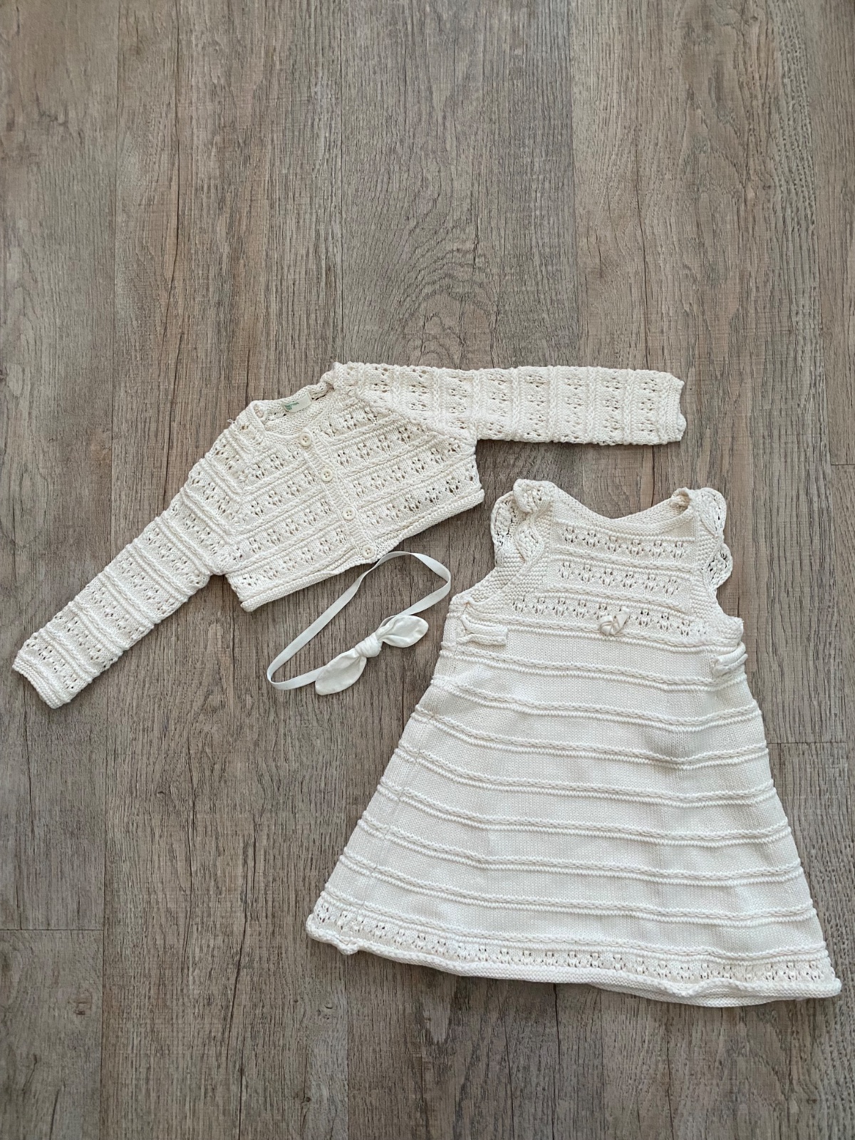 Súprava háčkovaná na krst alebo inú udalosť (šaty, svetrík) a pridám tričko/košielku, čelenku (veľkosť 3-6 mes.) - raz oblečené, vo veľmi dobrom stave