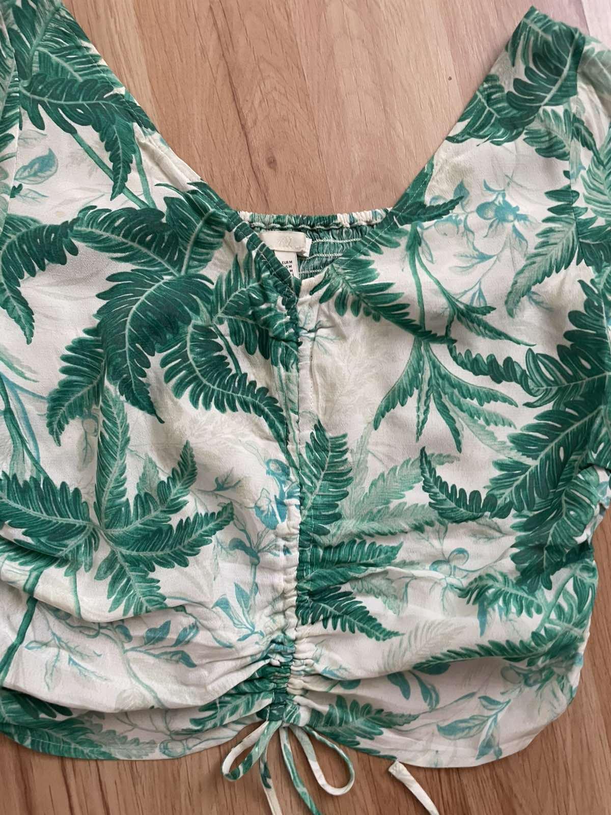 Výborný stav, ľahký letný komplet, top veľkosť M, sedí na S/M, šírka pod pazuchami 50 cm, dĺžka cca 58 cm, regulovateľná šnúrkou, kraťasy na gumu, veľkosť S, skôr M, pás v pokoji 36 cm, dĺžka 46 cm