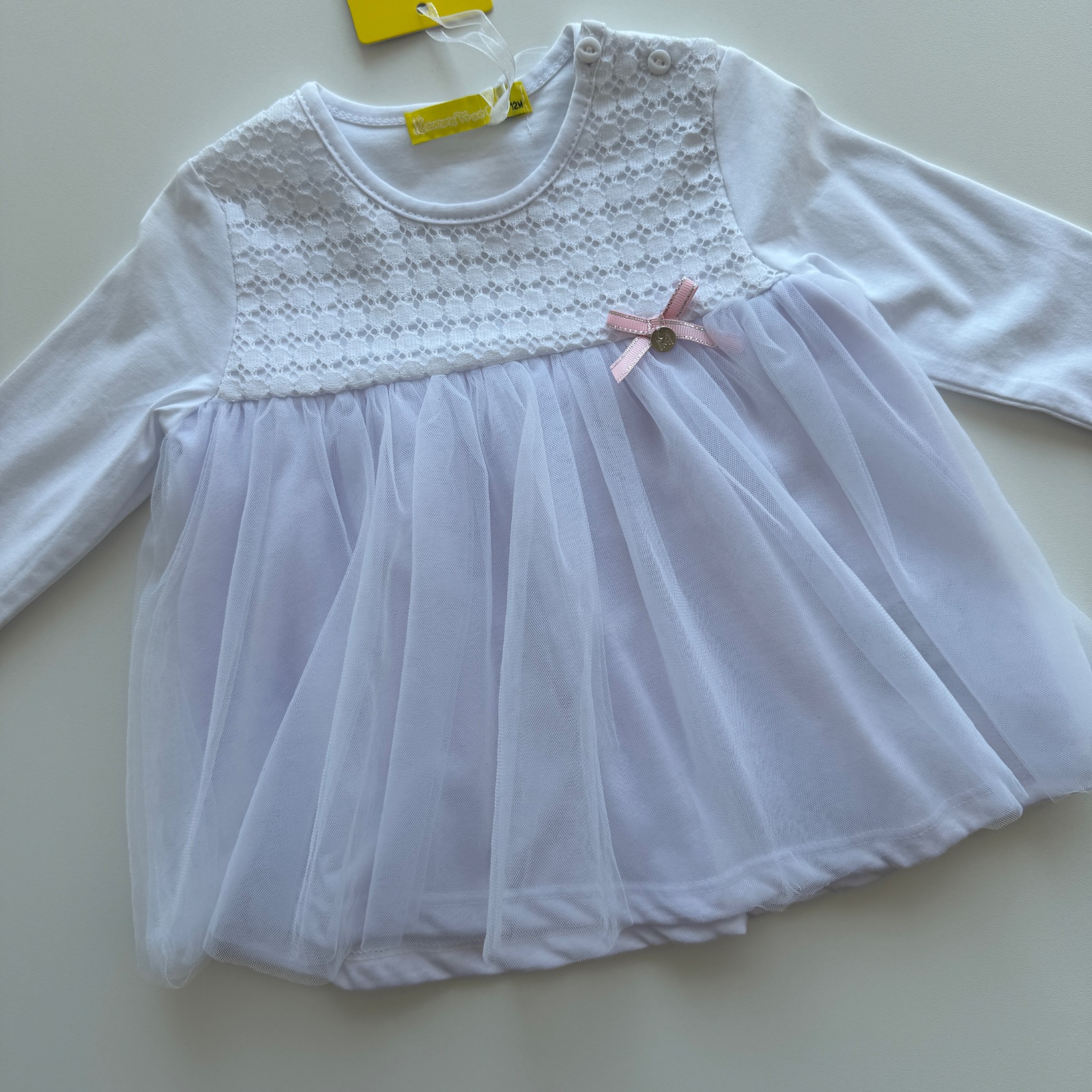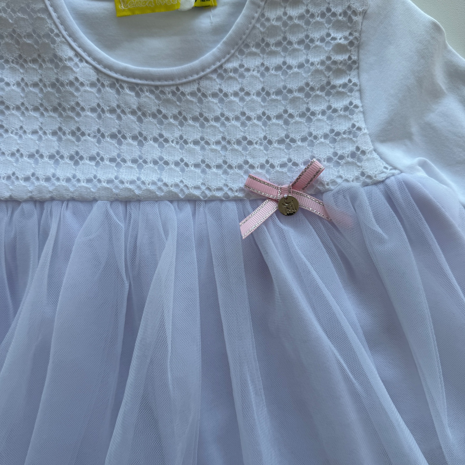 veľkosť 12-18 m - šaty - dĺžka 38 cm, šírka pod pazuchou 2x29 cm, legíny - dĺžka 41 cm, pás 2x19 cm až 2x29 cm