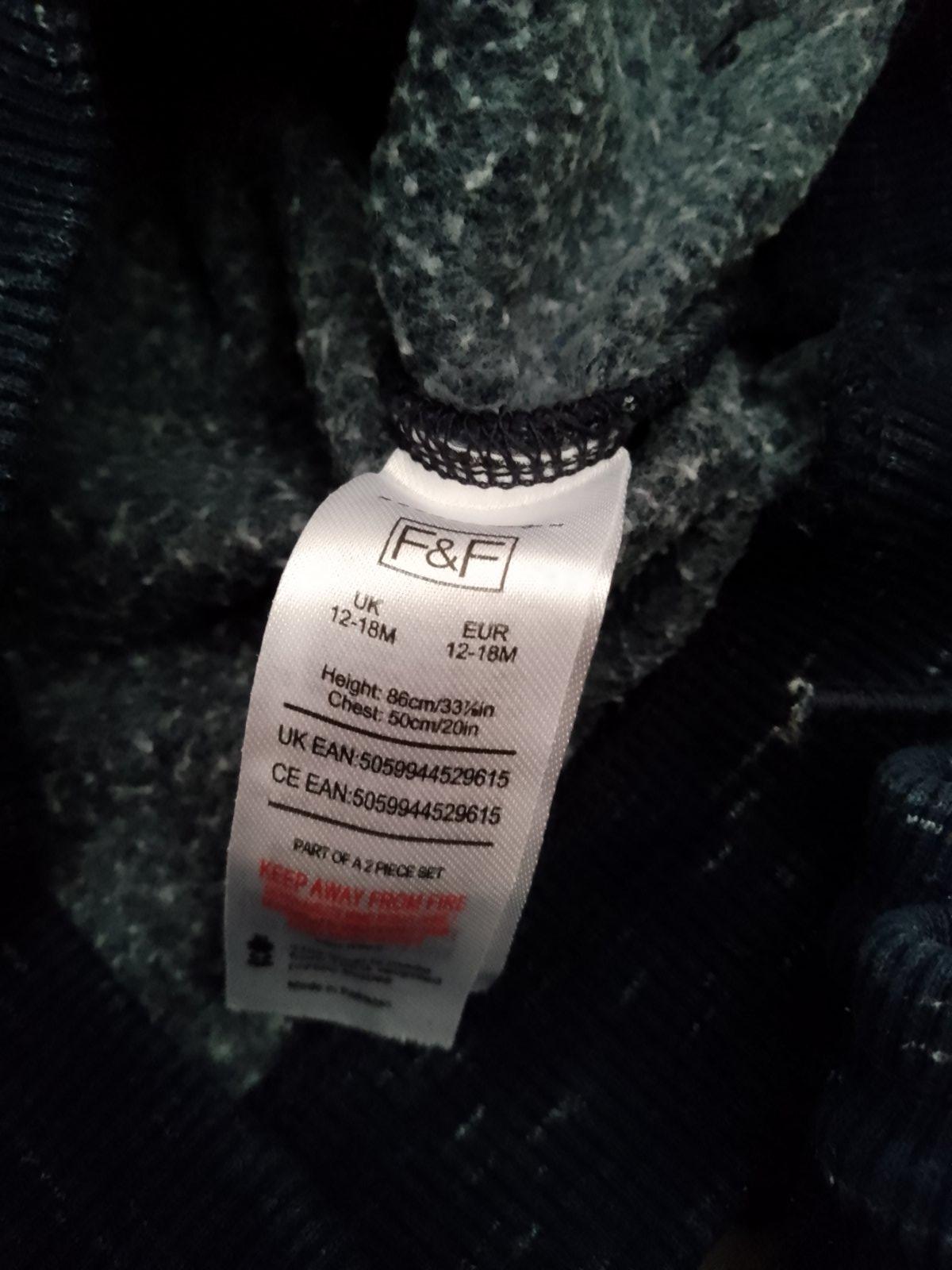 Veľkostne sedi na vek 12-18 mes. Nohavice dlhe 41 cm, dlzka od pleca dole 31 cm, rukav 28cm. Osobný odber možný z Prešova resp. zašlem poštou.-