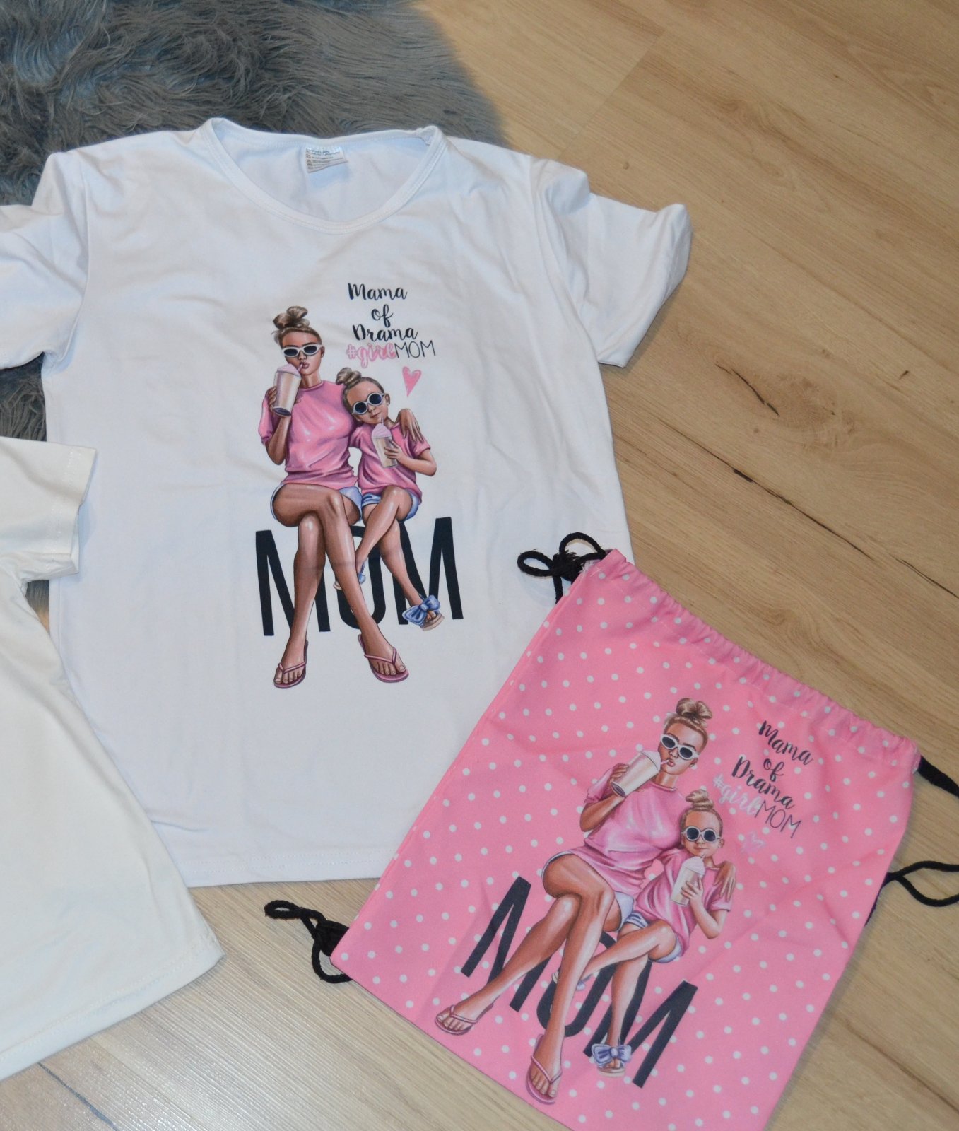 SkladomTématický set "Mama of drama" 3 dielny, bielo ružovej farby, materiál bavlna.