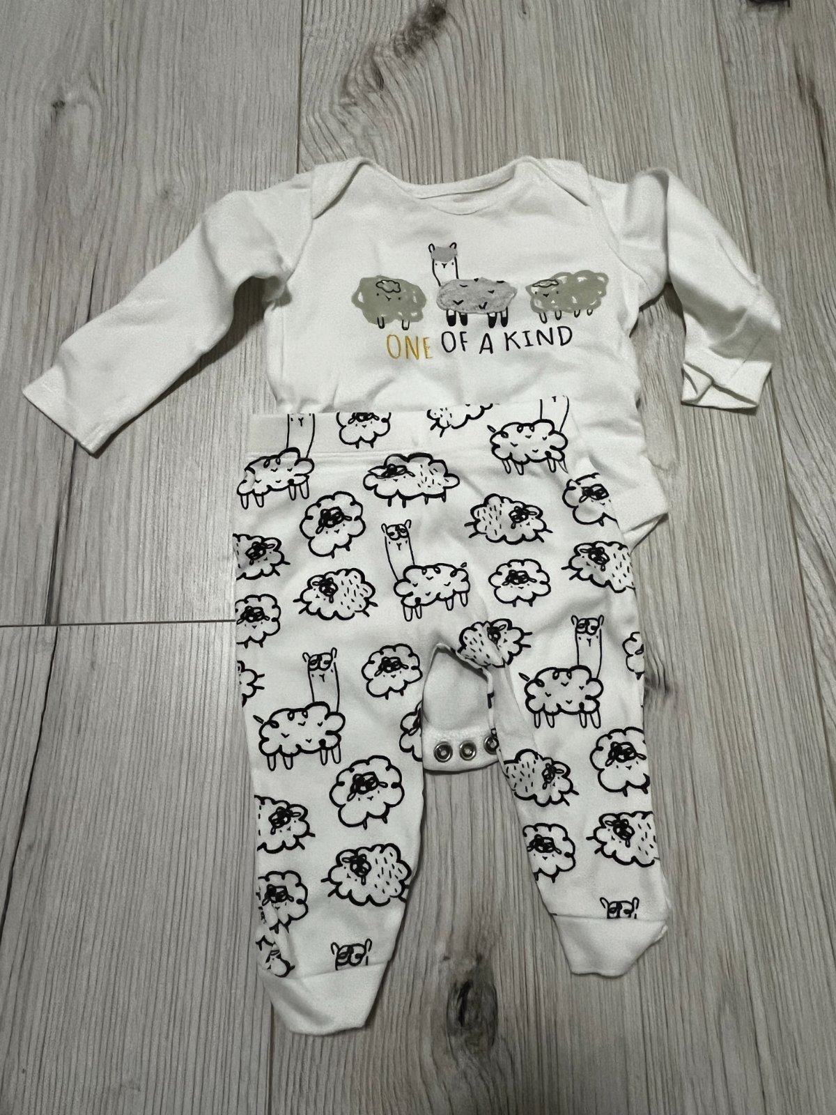 Predám súpravu bieleho body s dlhým rukávom a legín so vzorom ovečiek značky F&F, veľkosť: 68