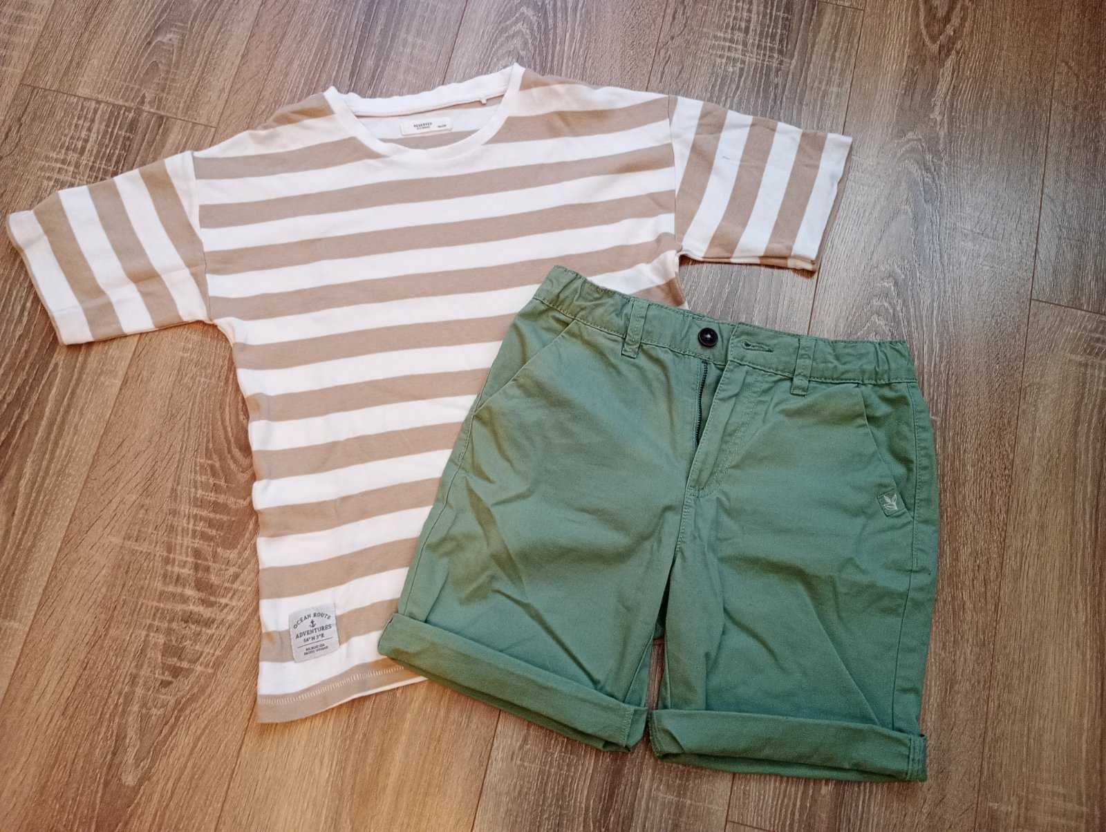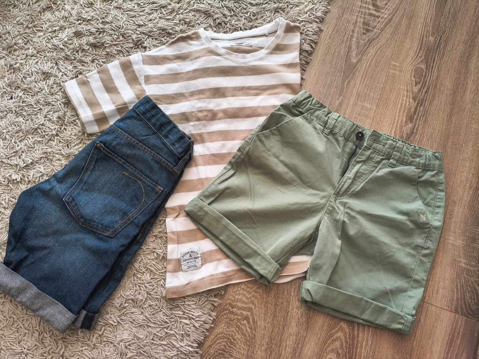 Krásne šortky na leto, nohavice s regulovateľným pásom, raz oblečené a tento rok sú už malé tričko tiež reserved oblečené možno 2-3X a tiež už je malé