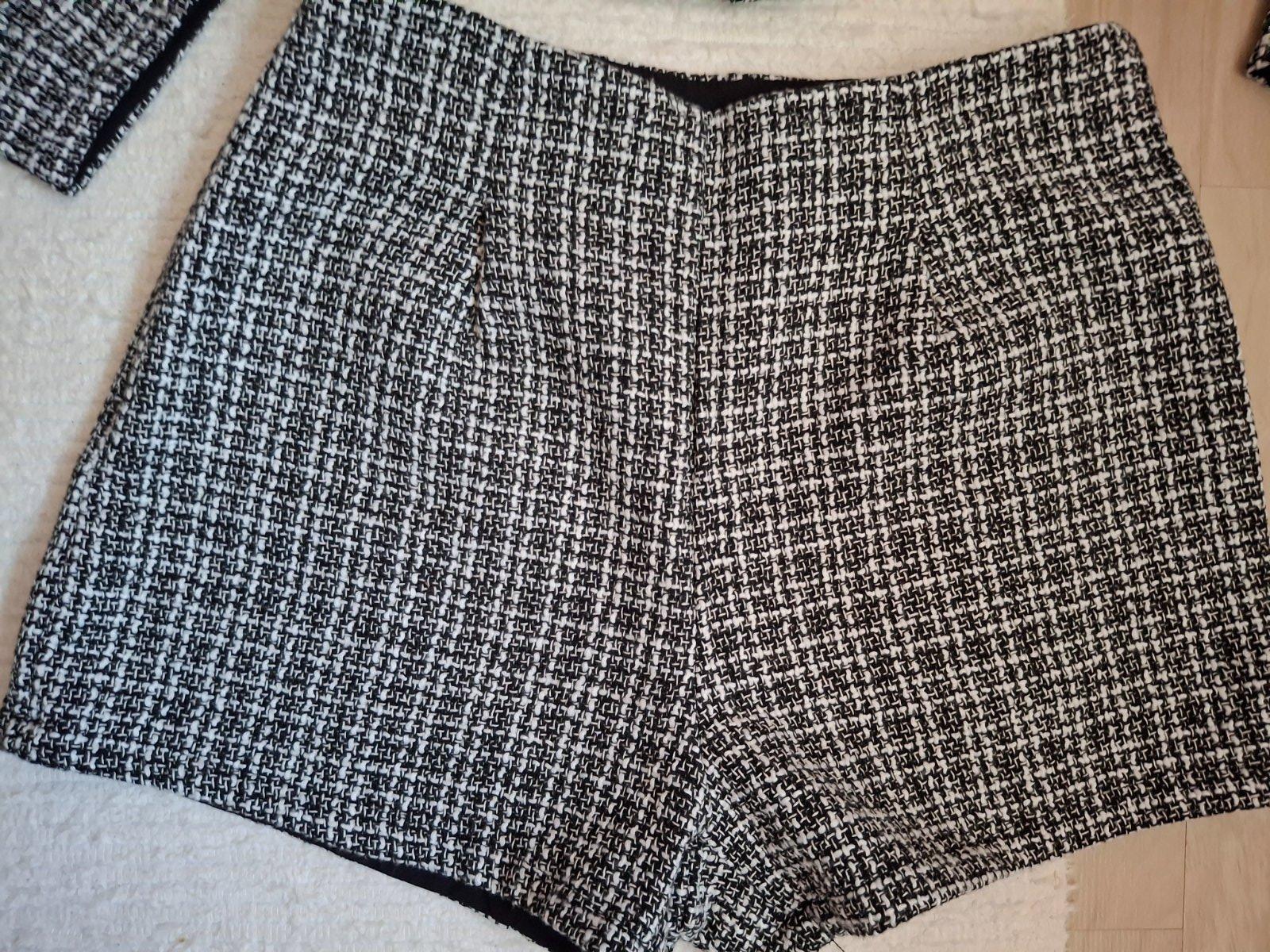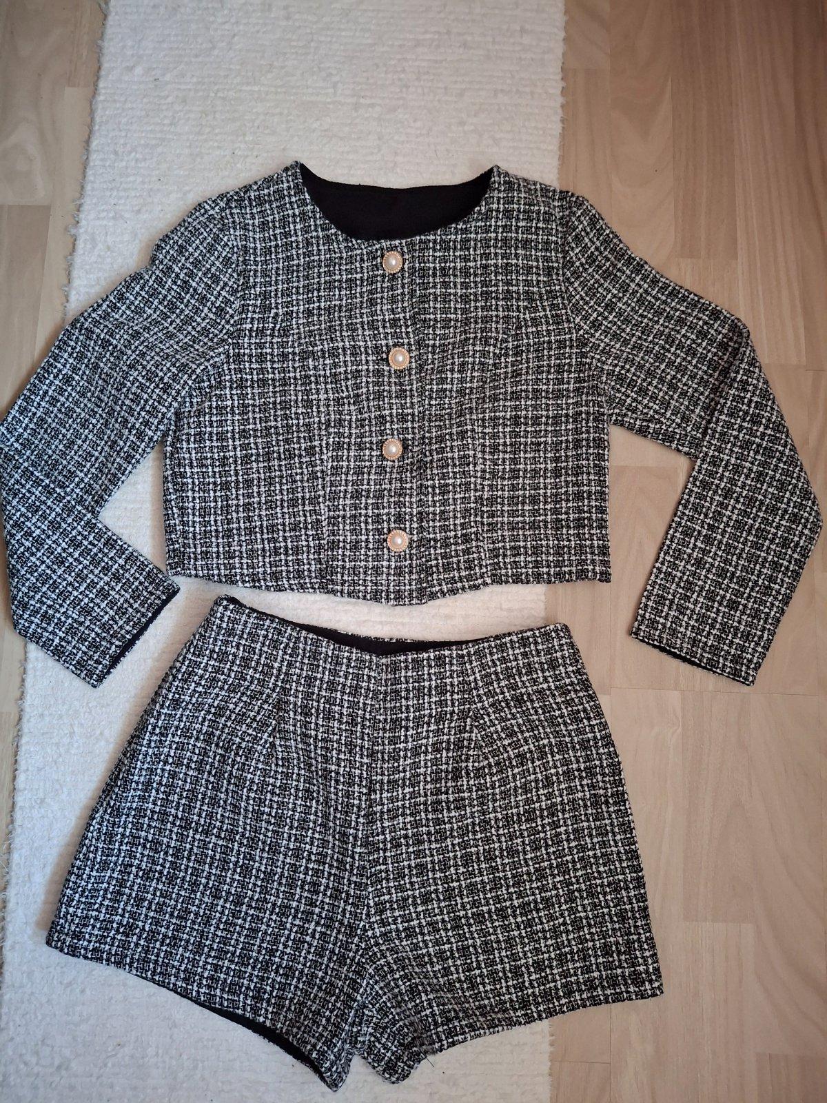 Teplý komplet sako a mini sukňa - károvaný vzor. Cena za kus 5 eur.