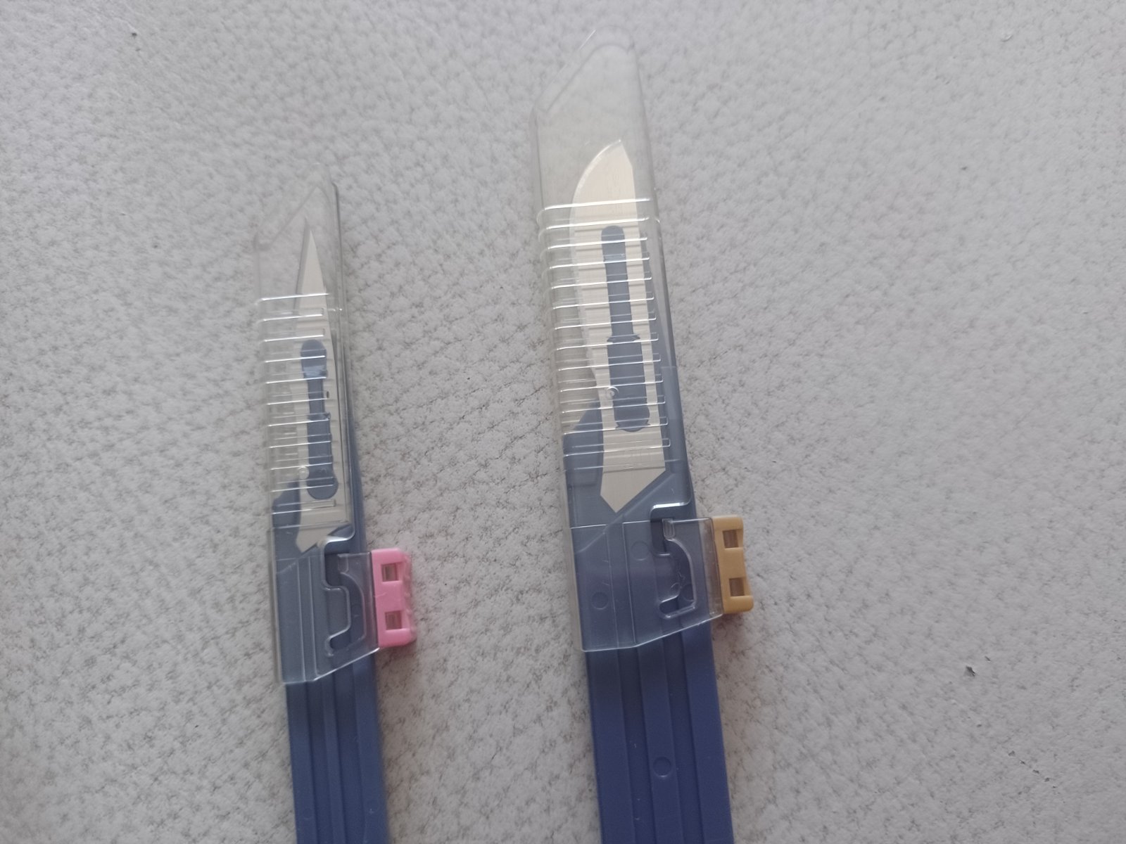 Jeden spicaty druhý väčší daju sa zatvoriť,cepelky sa nedajú meniť,ale jeden vydrží dlho na viac použití, ,cena 1eur kus