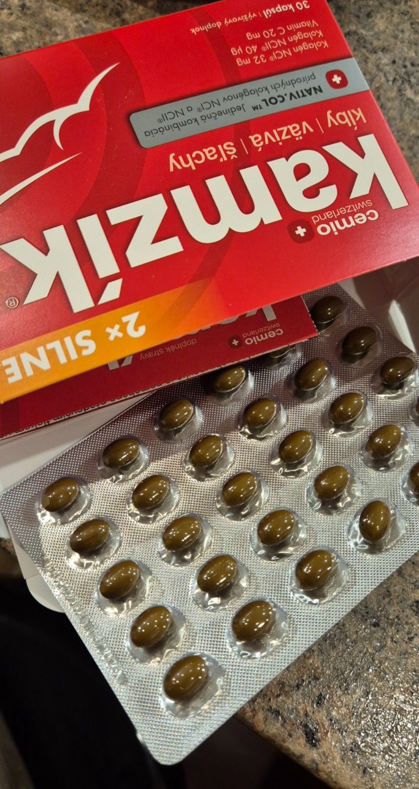 Nerozbalene balenie. Vhodné na podarovavanie. 30 talbiet. Dátum spotreby 08/2026. Nevhodný dar. Cemio Kamzík® teraz 2× silnejší!* Jedinečné kolagény v prirodzenej forme: Kolagén typu I ako hlavná súčasť väzov, šliach a kože. Kolagén typu II, obsiahnutý v kĺbovej chrupavke. Vitamín C ako podpora tvorby vlastného kolagénu pre správnu funkciu kĺbových chrupaviek.