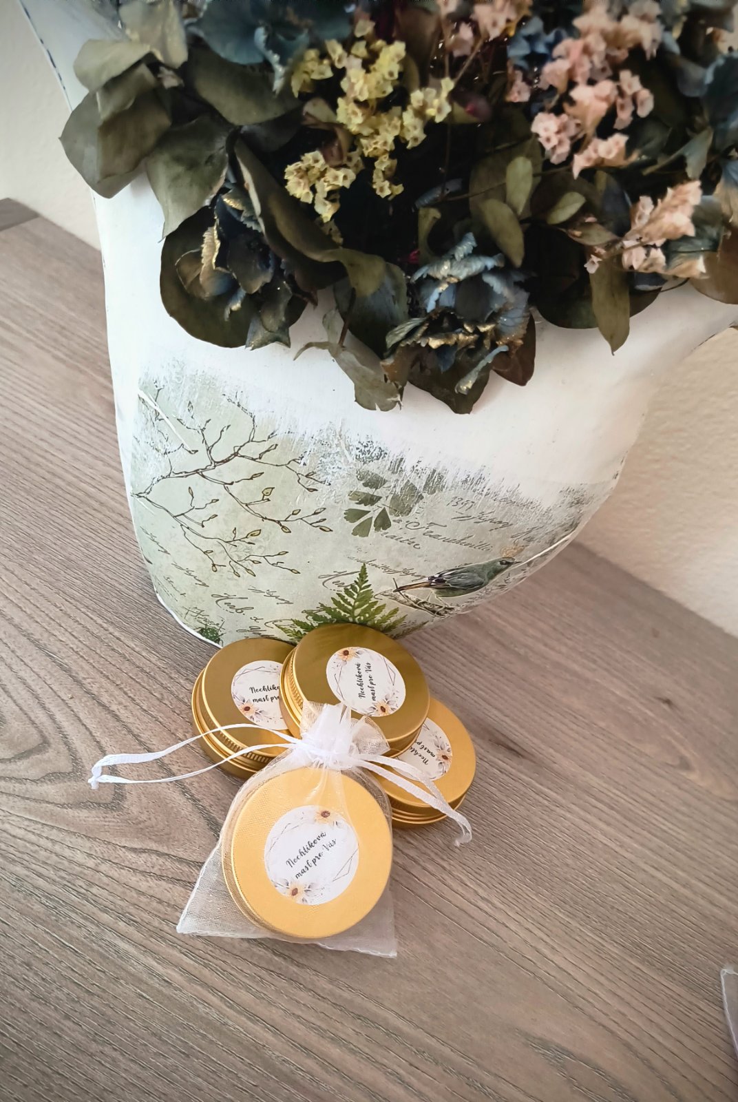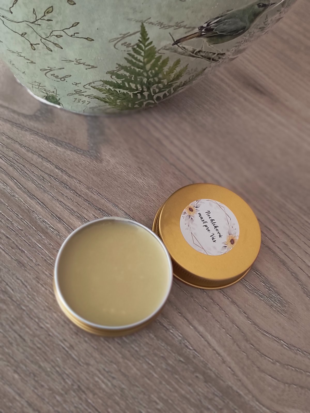 Mastička je vyrobená z kvalitných organických surovín...nechtíček náš zozberaný,vosk od nášho včelára,použitý EO 100%prírodný...žiadne syntetické,umelé arómy...len dary od našej matky prírody 🙂