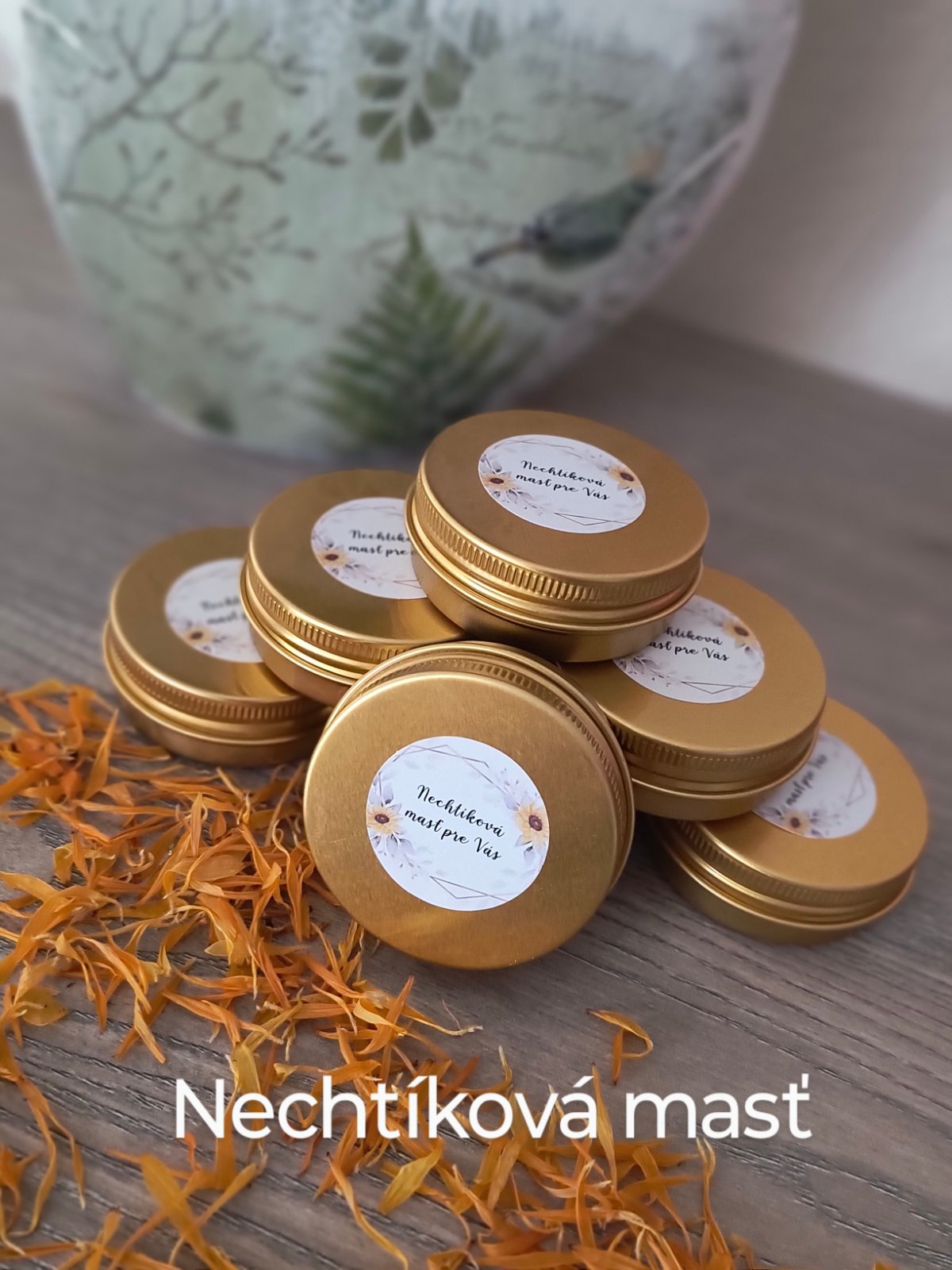 Nechtík lekársky,Slneč.Bio olej, Bio bamb.maslo,Extrakt CO2 Nechtík lek.,Vč.vosk,Vitamín E-prírodný,Nechtikový Bio olej ...vyrobený mnou a maceráciou bylinky niekoľko týždňov v Bio olivovom oleji....
