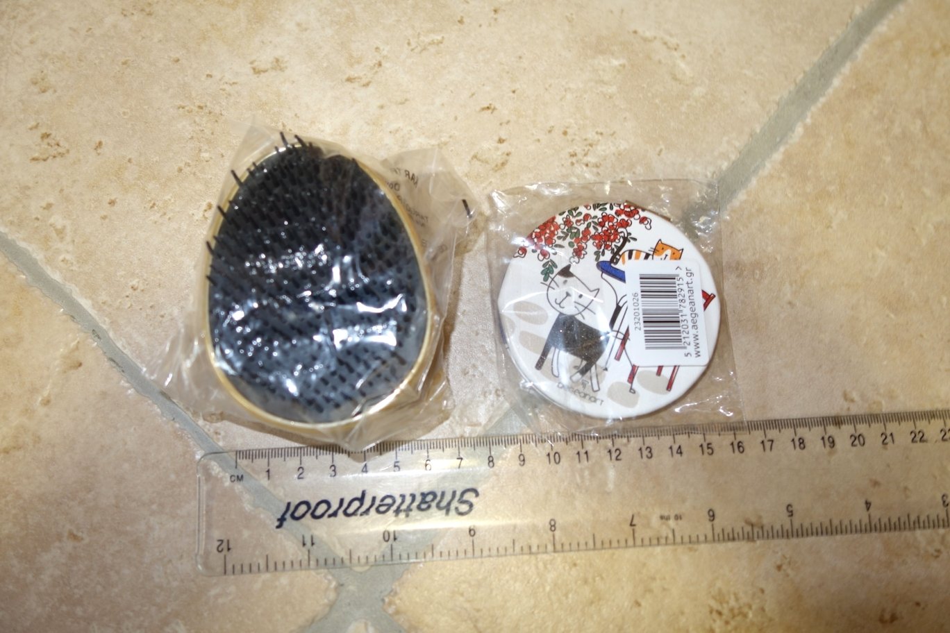 Kefa na štýl Untangle a guľaté zrkadlo do kabelky.