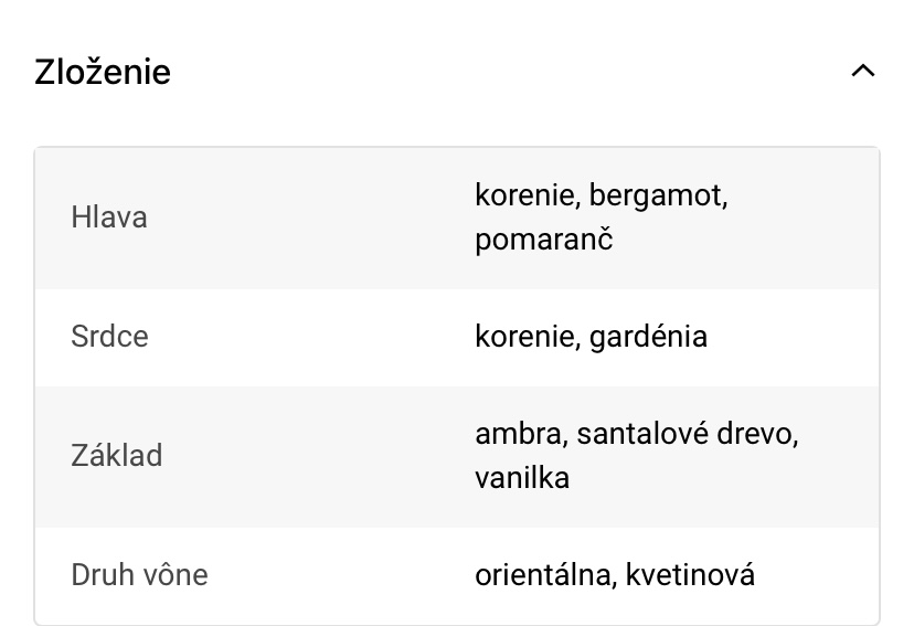 Cca polovica obsahu, príjemná korenista pomaranč vôňa, zloženie vo fotografiách
