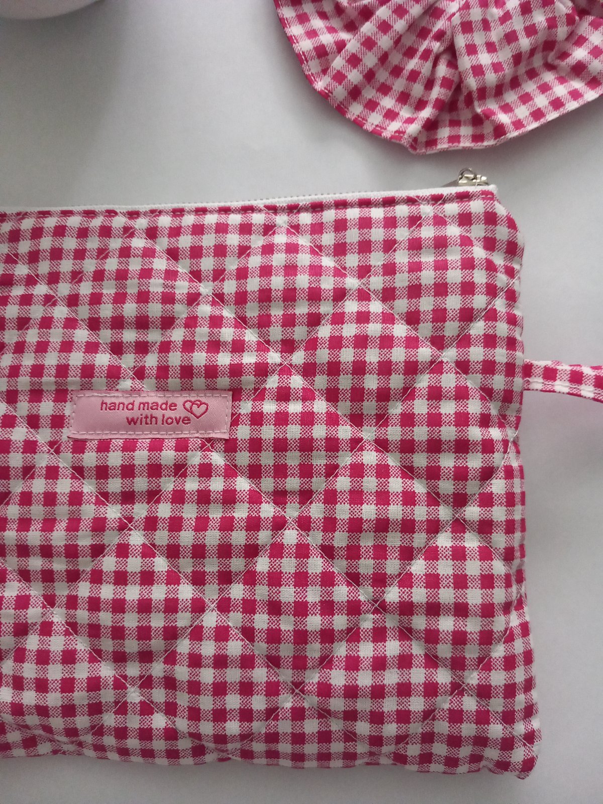 Dámska kozmetická taštička alebo taštička na drobnosti ,či ženské potreby ušitá z kvalitnej bavlnenej látky . Taštička je tmavoružovej farby , podšitá vatelínom , poprešívaná pre lepšiu pevnosť a podšitá 100 % bavlnou Zapínanie je na zips pre lepšie zapínanie Taštičku viete prať v pračke na 40 stupňov Rozmery taštičky sú 19 x24 cm K taštičke je aj scrunchies gumička z tej istej látky ktorú máte vždy s taštičkou po ruke