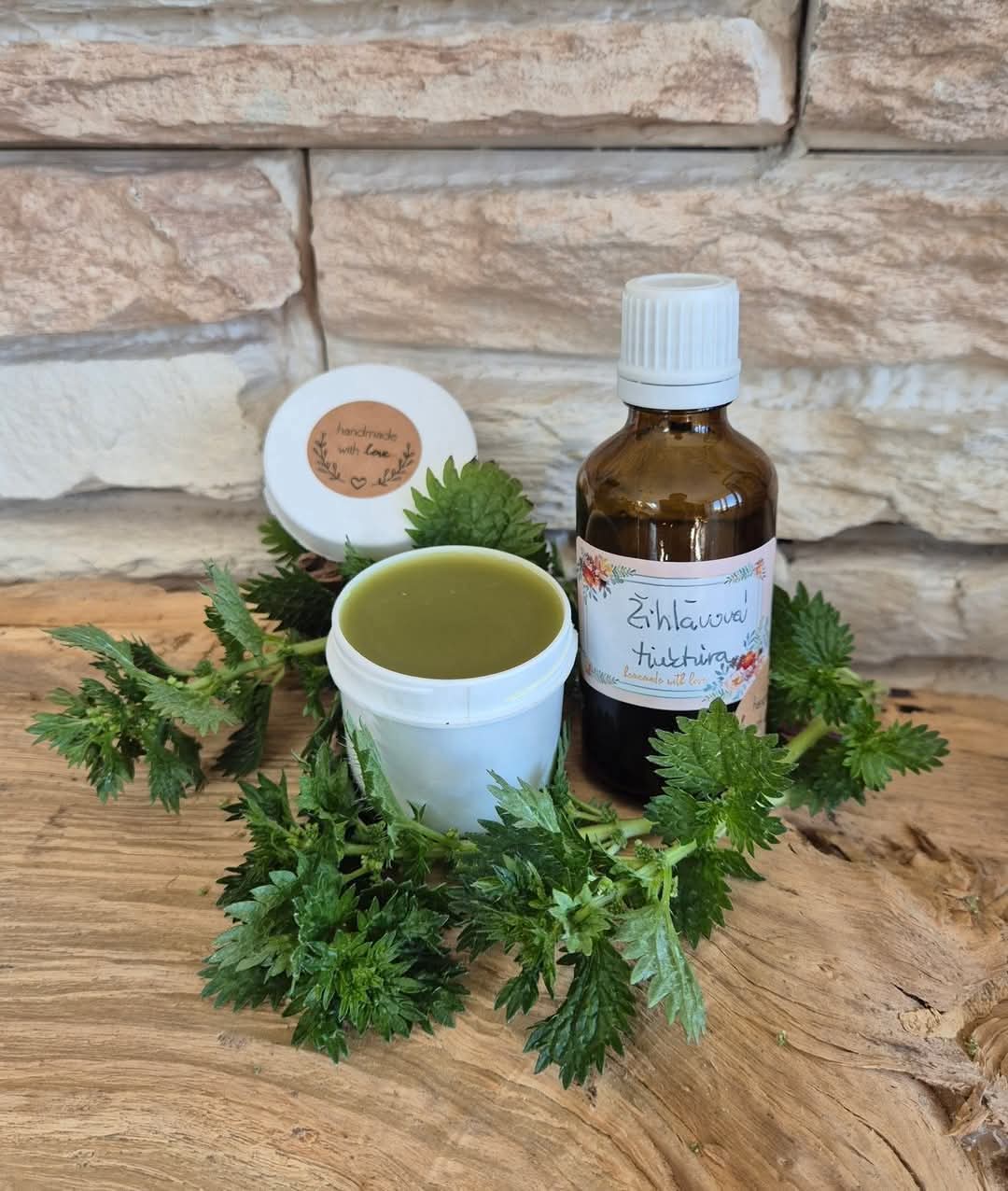 Zloženie: žihľava doma pestované, včelí vosk, bravčová masť z vlastnej výroby.