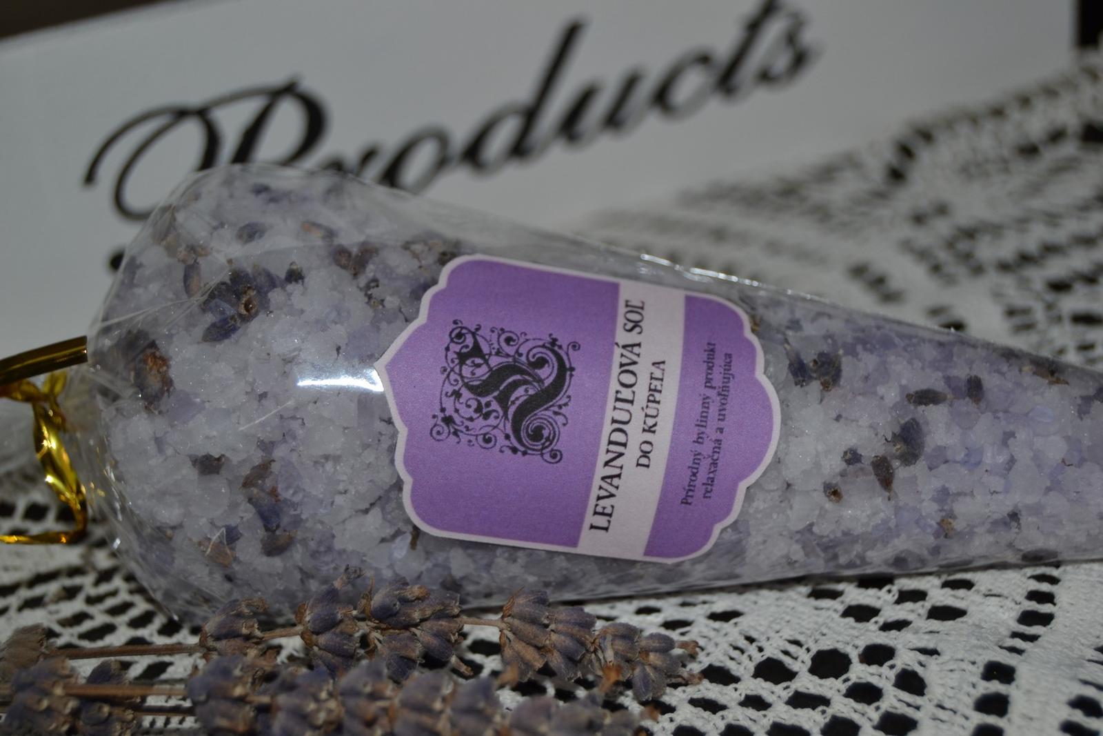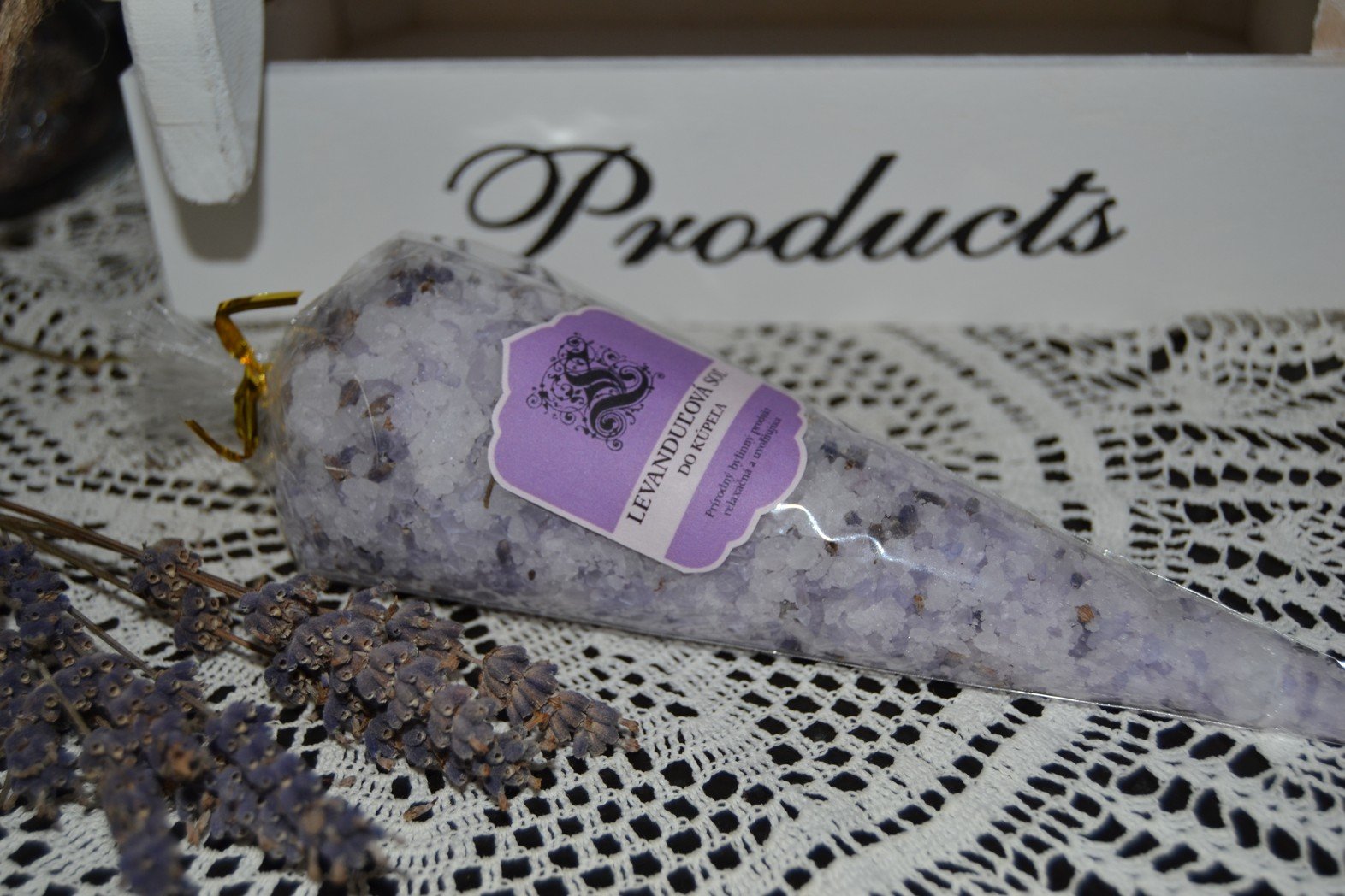Levanduľová kúpeľová soľ „relaxačná“. Dokonale zjemňuje, regeneruje pokožku a uvoľňuje myseľ. Pôsobí proti stresu, stimuluje svaly, upokojuje pri zdravotných ťažkostiach a bolesti. Obohatená magnéziom a kvetmi levandule lekárskej. Používa sa ako prísada do kúpeľa. Balenie 200 g