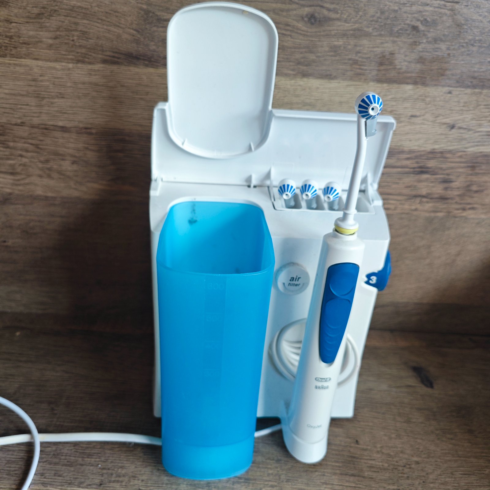 Asi mesiac používaná kefka (potom opadlo nadšenie a dcéra sa vrátila ku klasickej kefke). S puzdrom a jednym novym nadstavcom.