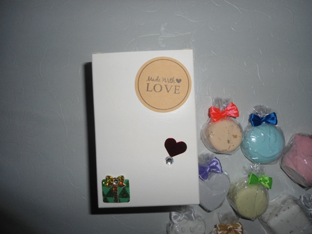 736. Šumivé bomby do kúpeľa - darčeková krabička, v krabičke sa nachádza 9ks šumiviek - Mix voní, tvarov a farieb, s bylinkami aj bez mozem namiesat rozne, zdobenie krabicky tiez podla dohody, cena za krabičku 6e