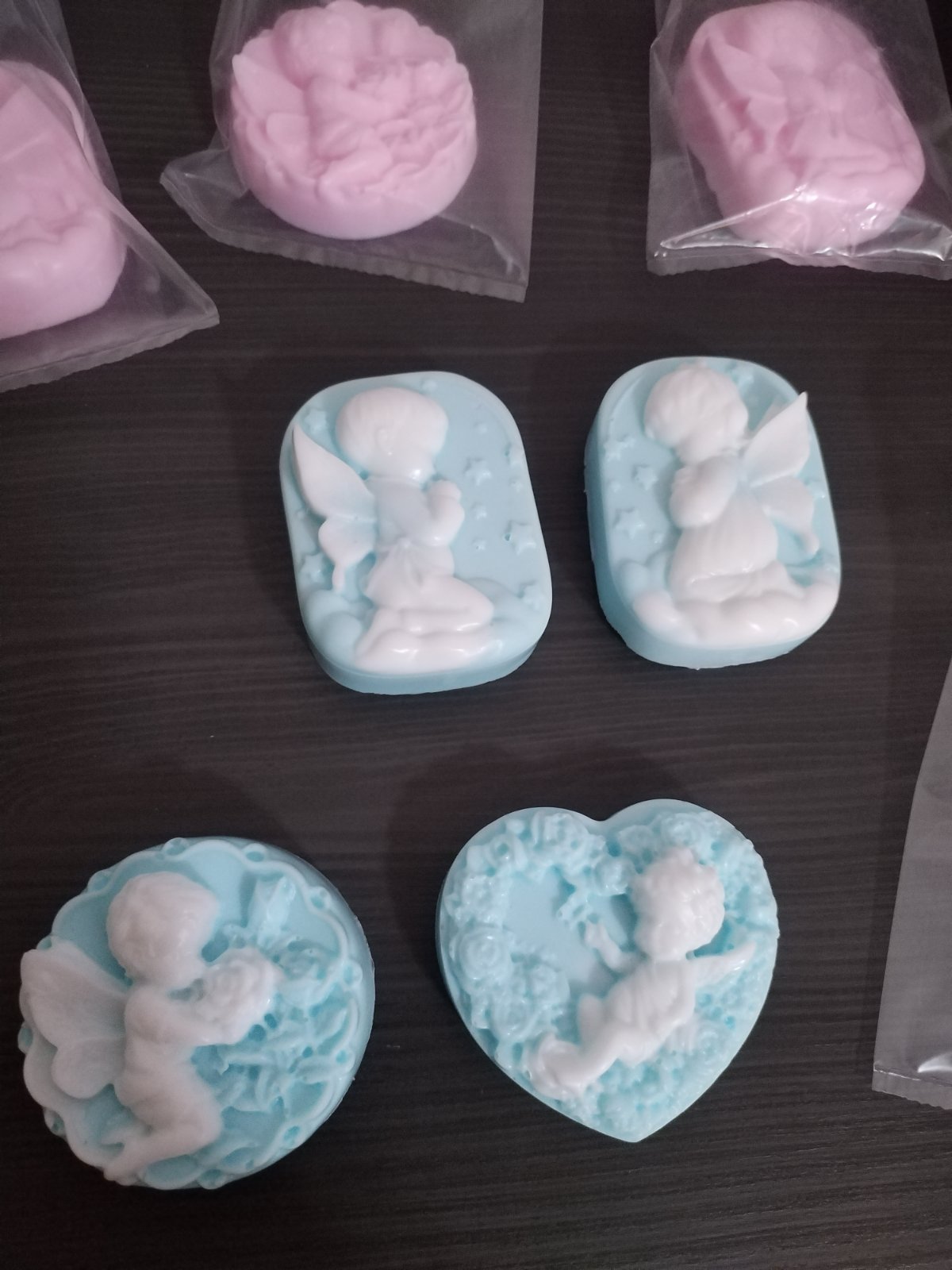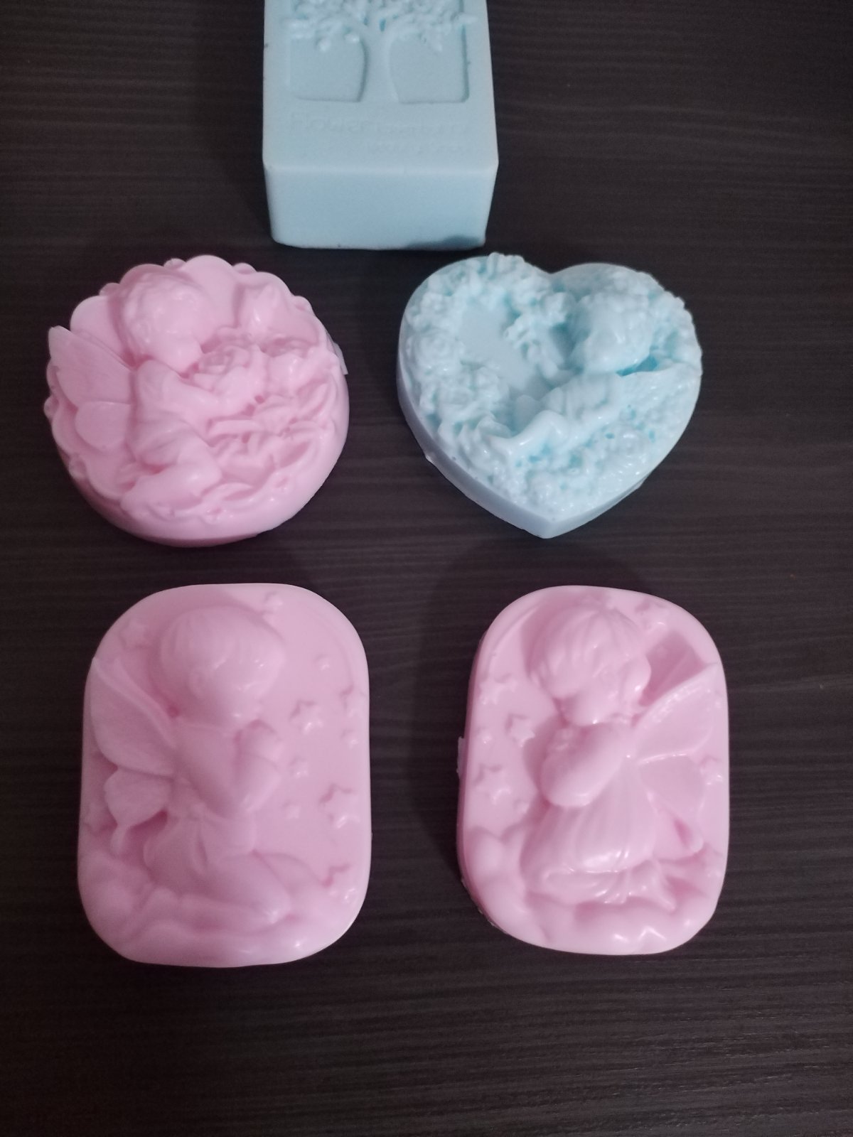 Mydielka modré, modro biele s jemnou nádhernou vôňou akú si vyberiete, rovnako farbu, väčšie po 3 e, menšie ajeliky po 2 e, jemne mydielka, vhodné aj ako darček.