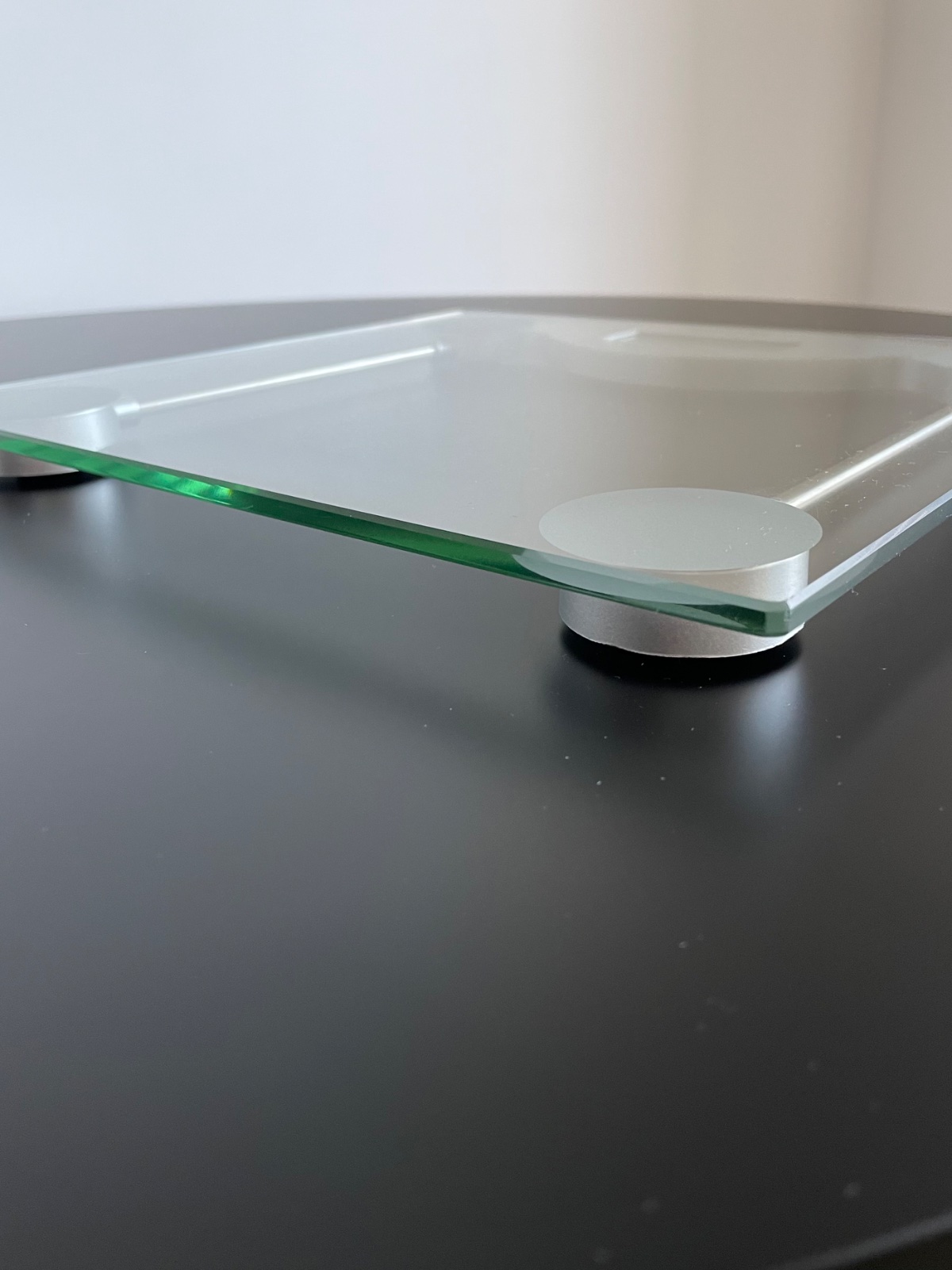 šírka 29,3cm, dĺžka 28,3cm, výška 2,2cm, hrúbka skla 0,6cm