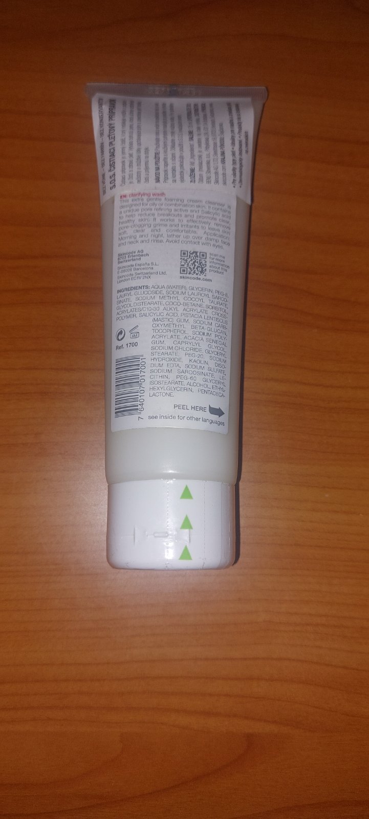 S.O.S Čistiaci pletovy prípravok Švajčiarska značka Skincode, predajna cena na internete cca 35eur