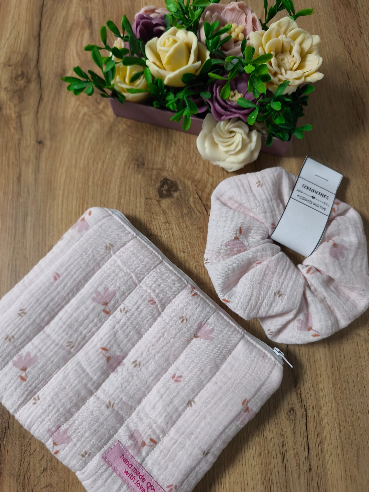 Praktická a štýlová kozmetická taštička ušitá z mušelínu ,podšitá vatelínom s ktorým je poprešívaná a podšitá bielou bavlnou vhodná na každodenné používanie aj cestovanie. Poskytuje dostatok priestoru na uloženie kozmetiky, hygienických potrieb či drobných doplnkov. Vďaka kompaktným rozmerom sa ľahko zmestí do kabelky alebo kufra.