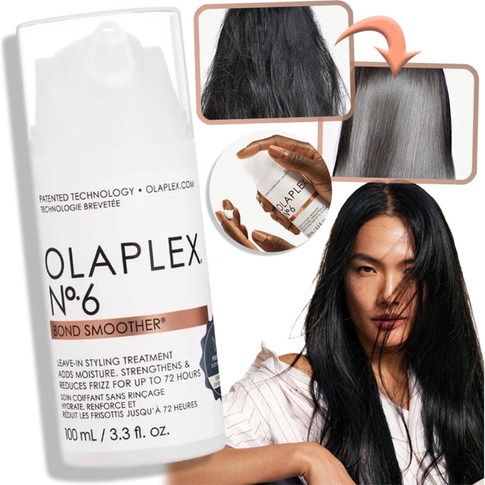Olaplex No. 6 Bond Smoother je vysoko koncentrovaný bezoplachový stylingový krém, ktorý posilňuje, hydratuje a chráni vlasy, pričom eliminuje krepovatenie až na 72 hodín. Obsahuje patentovanú technológiu Olaplex Bond Building Technology™ na opravu poškodených disulfidových väzieb vo vlasoch.