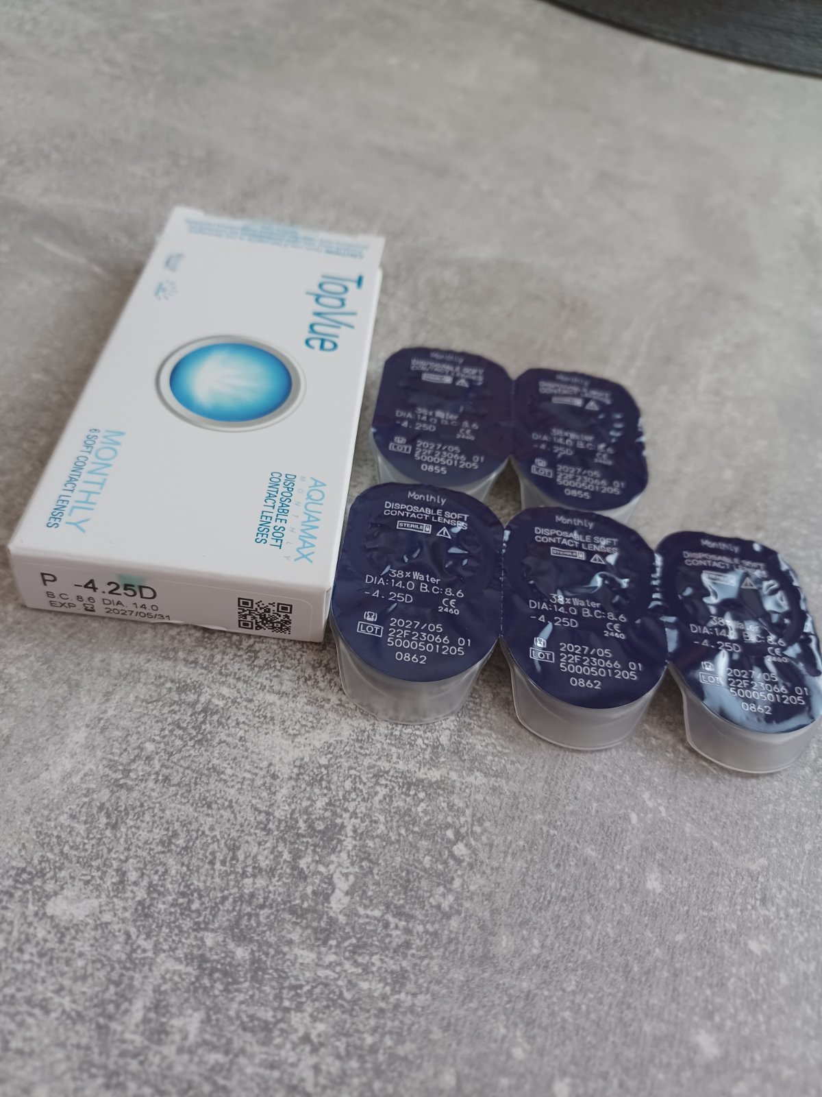 Predám mesačné kontaktné šošovky TopVue. S hodnotami -3, -3,25 a -4,25. B.C 8.6 a DIA 14.0. Jeden kus šošovky za 2€.